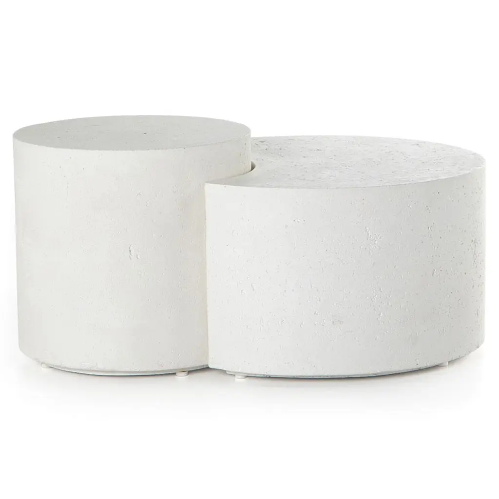 Messiah Nesting Modern White Concrete Outdoor Nest Coffee Table - Set Of 2
