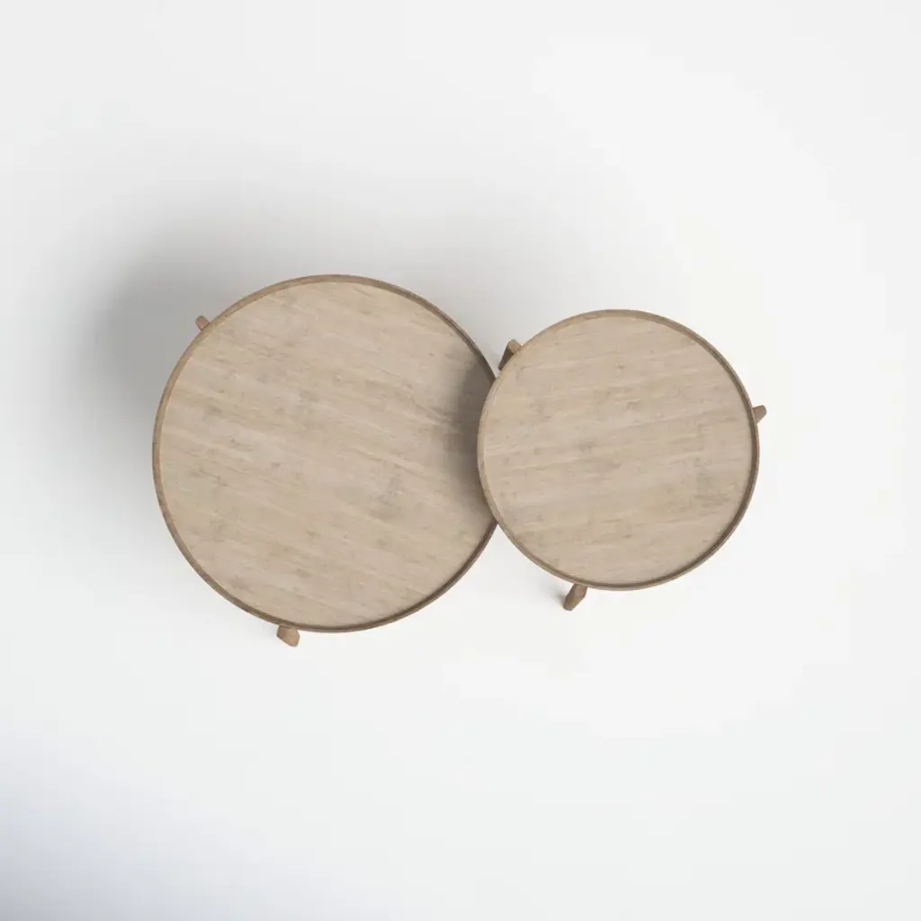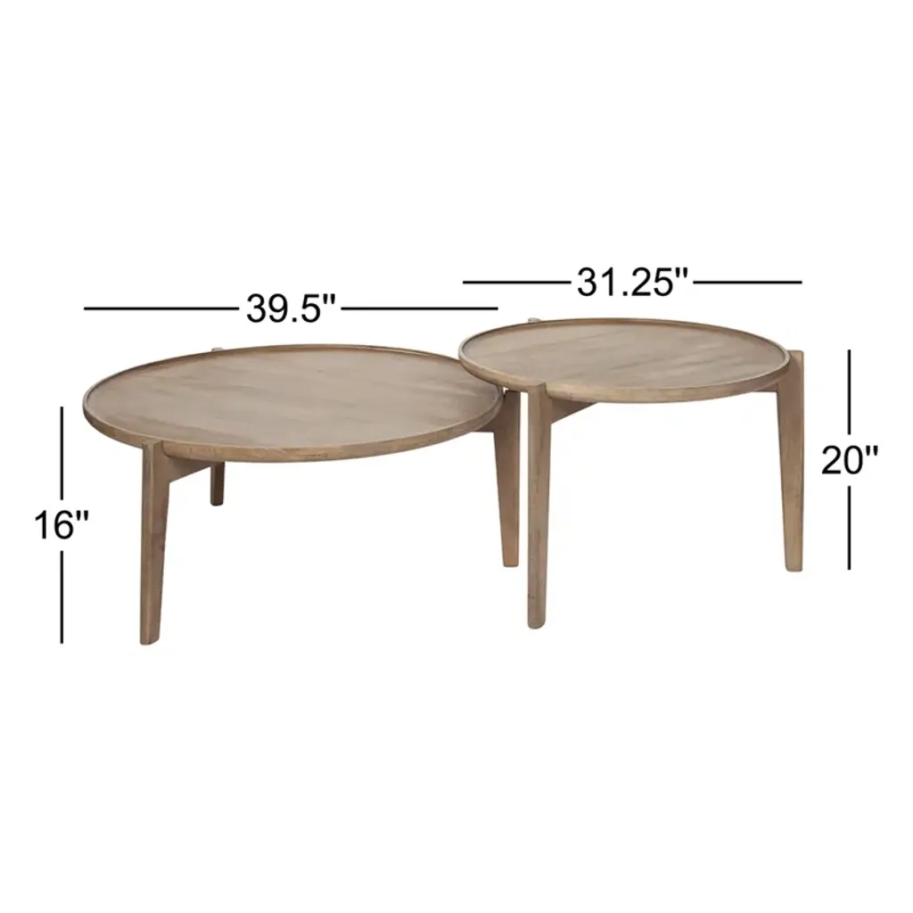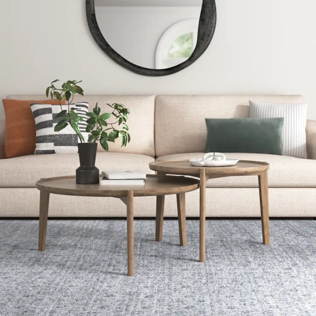 This 2-piece set of round coffee tables adds a fresh look to your living room or den. They're crafted from solid wood, and they boast a natural finish that lets the wood grain shine through. Each table sits on a three-legged base for visual intrigue, and they feature a raised edge to keep your drinks and decor from sliding off. Need a little inspo: Style these tables slightly nestled together for a curated look or split them up for an added surface wherever you need it.