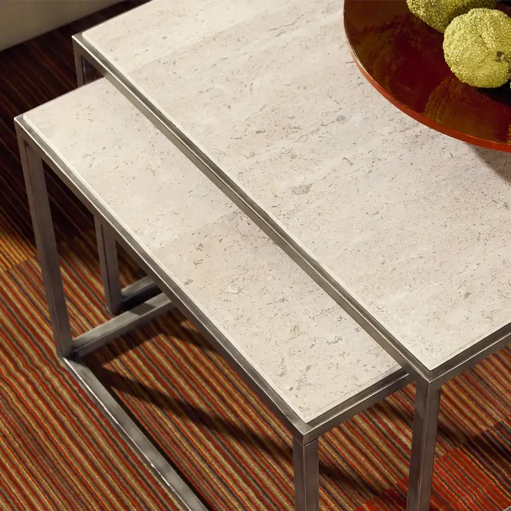 The Modern Basics Rectangular Cocktail Table seamlessly blends elegance and functionality with its sleek metal base and luxurious Travertine top. This sophisticated piece is not only a stunning centerpiece for any living space but also incredibly versatile, featuring two nesting tables that provide additional surface area when needed. Whether you're hosting a gathering or enjoying a quiet evening, this cocktail table offers a perfect blend of style and practicality, enhancing the modern aesthetic of your home while providing convenient storage and display options.