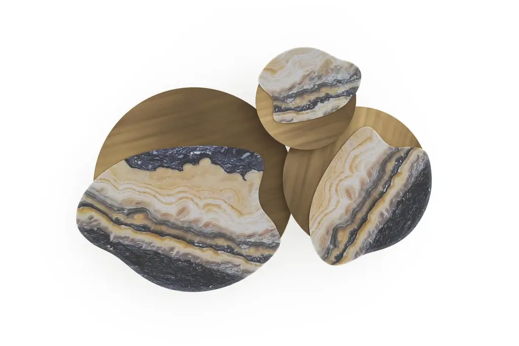 Modern Bordeira Nesting Coffee Tables, Nilo Onyx, Handmade Portugal Greenapple