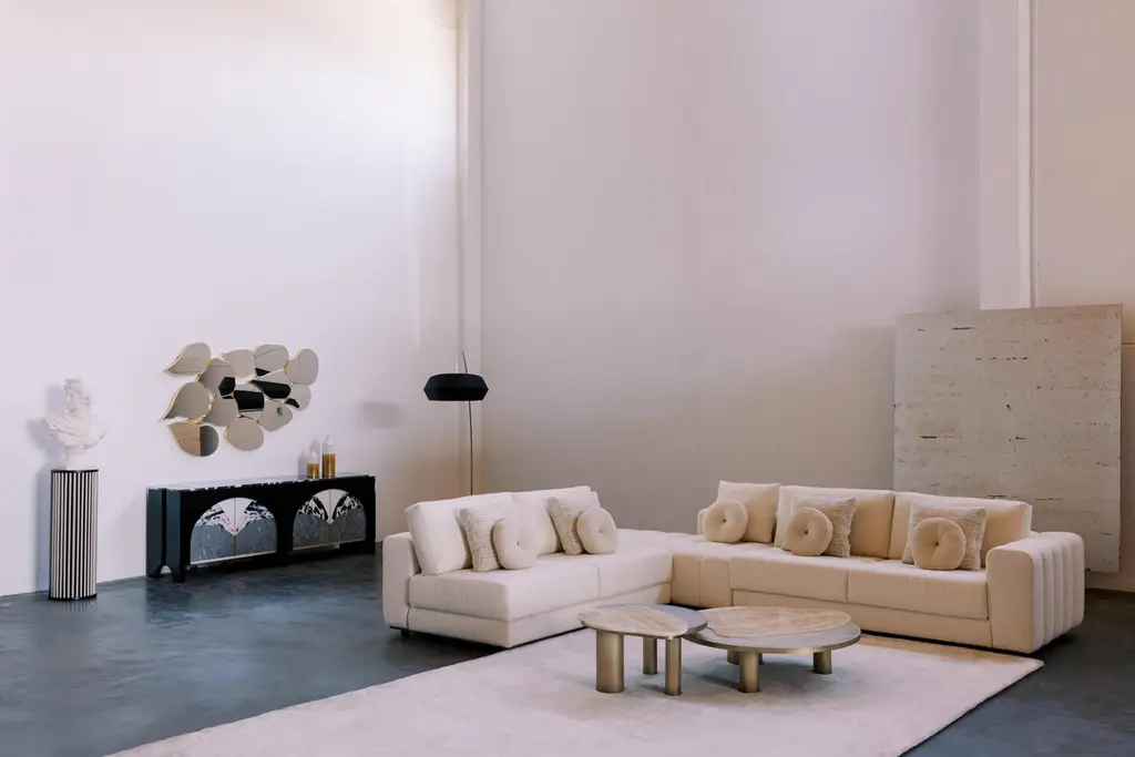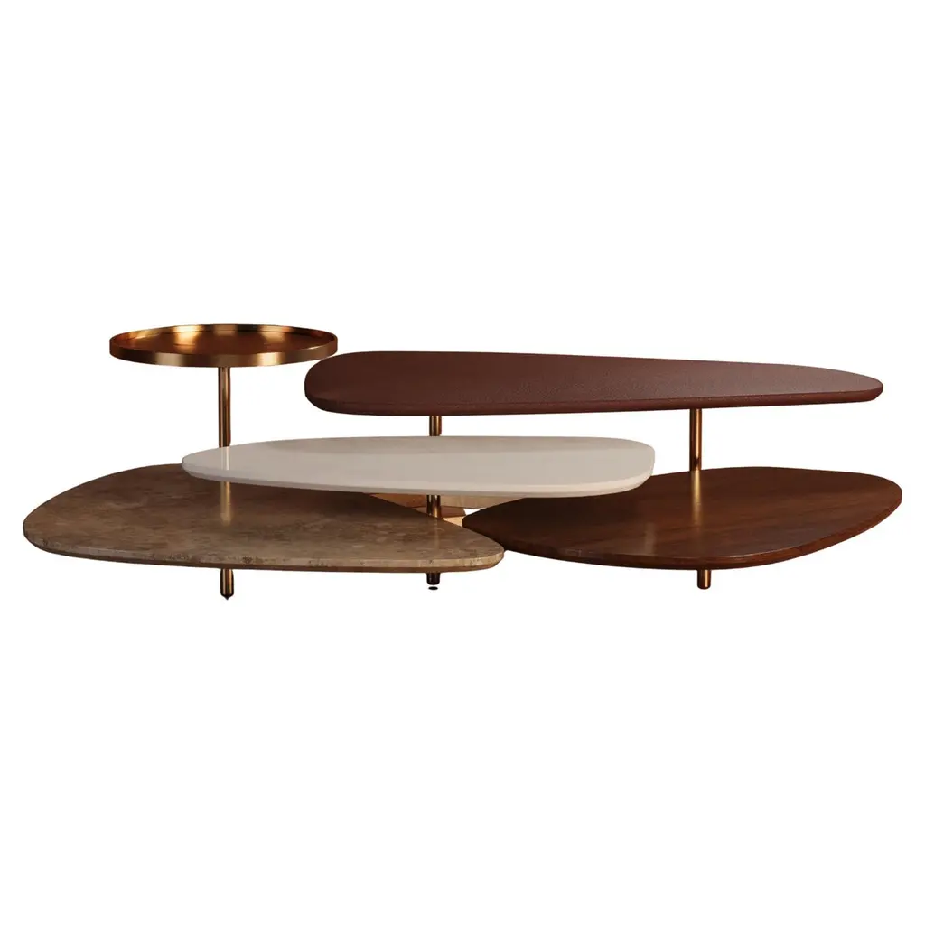 Bordeira Nesting Coffee Tables, Contemporary Collection, Handcrafted in Portugal - Europe by Greenapple.The Bordeira nesting coffee table was designed to bring the essence of nature into interior spaces, drawing inspiration from the captivating lines of Bordeira Beach. Through its sweeping curves, ocean meets the land in perfect harmony, expressing the true freedom of organic design. A favorite piece among designers, the Bordeira nesting coffee table combines fine craftsmanship and noble materials, making it the ideal centerpiece for contemporary interiors.The Bordeira coffee table set consists of three coffee tables, each featuring cylindrical legs and top in brushed and burnished antique brass with a matt varnish.A polished Nilo Onyx inlay detail in dark and beige tones adds contrast to the design.The Bordeira coffee table set can be customized in terms of dimensions, materials and finishes.Set of 3 Bordeira coffee tables dimensionsSmall:W.76 x De.71 x H.45cm W.29.9 x De.28 x H.17.7 in.Medium:W.111 x De.100 x H.38cmW.43.7 x De.39.4 x H.15 in.Large:W.152 x De.140 x H.30cmW.60 x De.55.1 x H.11.8 in.Set of 3 Bordeira Coffee Tables Material CodesST073 Nilo Onyx, Polished, Amber-Black, GlossME032 Brass, Brushed, Burnished, Varnished, Antique-Brass, MatteHandcrafted in Portugal - Europe by GreenappleUnique by design, Crafted by peopleGreenapple transforms contemporary spaces into exclusive narratives of design and craftsmanship. From custom-made furniture to bespoke interiors, each creation is a timeless work of art, shaped by master artisans who honor centuries-old techniques.Founded in 2005 by Sérgio Rebola and Rute Martins, Greenapple has earned global recognition among high-end clientele and leading design firms. While Rute designs each unique piece, Sérgio ensures uncompromising quality from design to production and from production to your home. We provide a seamless experience, offering short production lead times, worldwide delivery within 7 to 10 days, and white-glove service upon request.For U.S. clients, we can handle customs clearance, and offer white-glove service as well upon request.Nested Coffee Table, Stacking Coffee Table, Nesting Table Set, Set of Tables