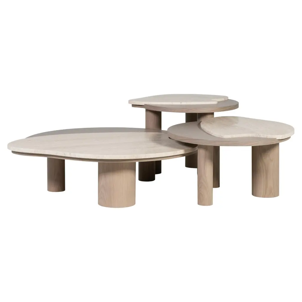Modern Bordeira Nesting Coffee Tables, Travertine, Handmade Portugal Greenapple