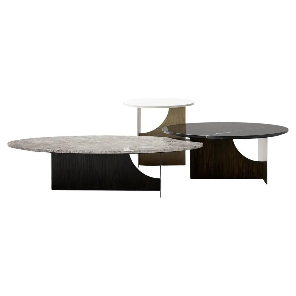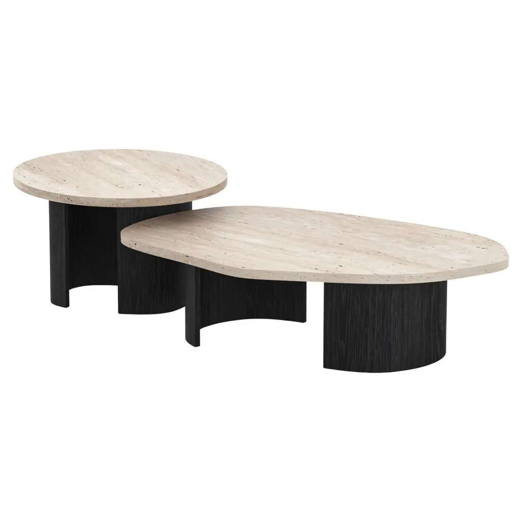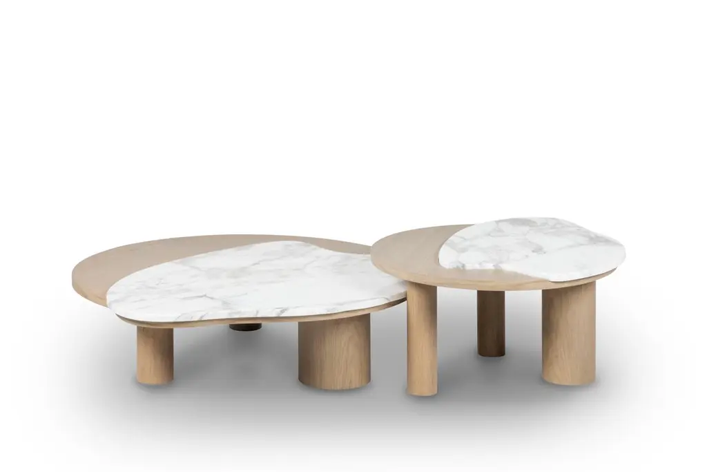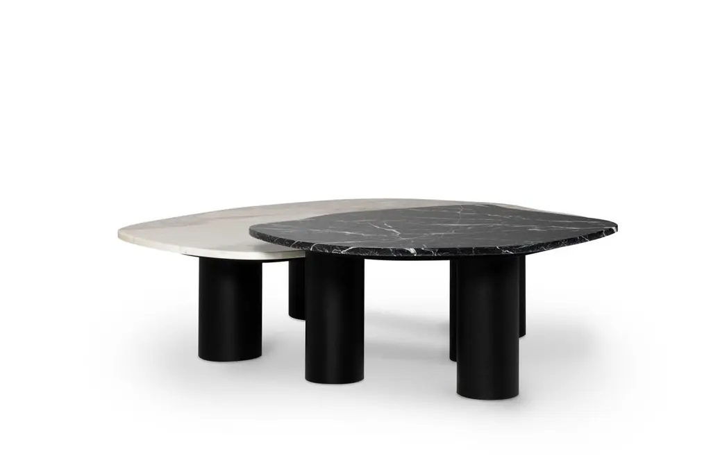 Curve coffee tables, Contemporary Collection, Handcrafted in Portugal - Europe by Greenapple.Designed by Rute Martins for the Contemporary Collection and inspired by fluid lines like in nature, this low table set adds a representation of our earth’s visual history to every living space. Its organic, flowing form creates a stunning combination between the lush stone texture of the Nero Marquina a Dover White marble and the American Oak Legs.Set of 2 Curve Coffee Tables DimensionsMedium:W.81 x De.76 x H.37 cmW.32.09 x De.29.92 x H.14.57 in.Large:W.122 x De.91 x H.30,5 cmW.48.03 x De.36.02 x H.12.01 in.Set of 2 Curve Coffee Tables Material CodesST010 Calacatta Cremo Marble, Polished, Cream, GlossST012 Nero Marquina Marble, Polished, Black-White, GlossWD107 American Oak, Stained Open-pore, Varnished, Black, MatteHandcrafted in Portugal - Europe by GreenappleUnique by design, Crafted by peopleGreenapple transforms contemporary spaces into exclusive narratives of design and craftsmanship. From custom-made furniture to bespoke interiors, each creation is a timeless work of art, shaped by master artisans who honor centuries-old techniques.Founded in 2005 by Sérgio Rebola and Rute Martins, Greenapple has earned global recognition among high-end clientele and leading design firms. While Rute designs each unique piece, Sérgio ensures uncompromising quality from design to production and from production to your home. We provide a seamless experience, offering short production lead times, worldwide delivery within 7 to 10 days, and white-glove service upon request.For U.S. clients, we can handle customs clearance, and offer white-glove service as well upon request.Cocktail Table, Center Table, Centre Table, Low Table, Tea Table, Nesting Coffee Tables