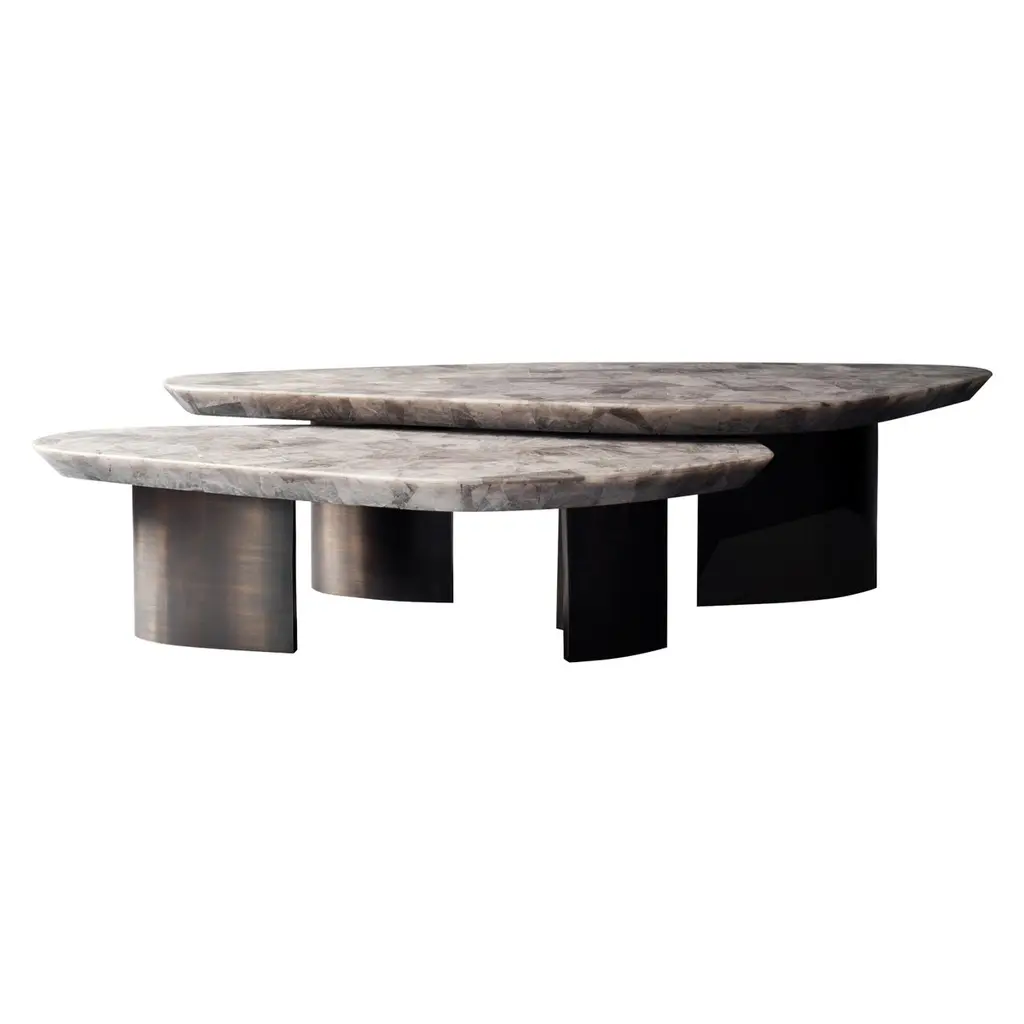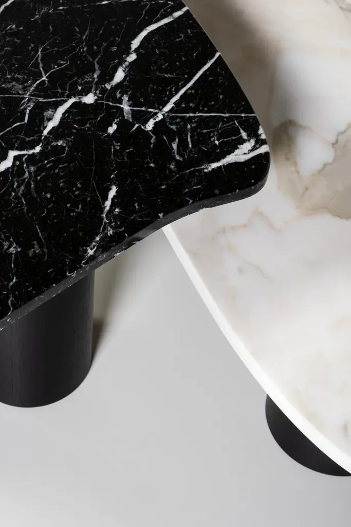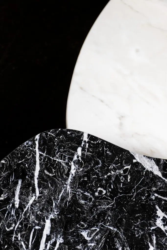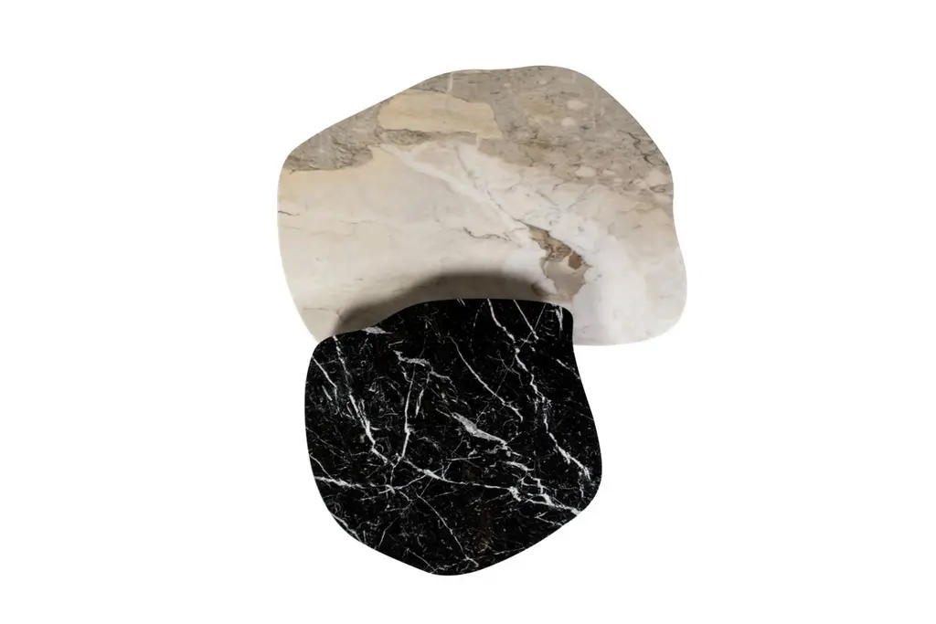Curve coffee tables, Contemporary Collection, Handcrafted in Portugal - Europe by Greenapple.Designed by Rute Martins for the Contemporary Collection and inspired by fluid lines like in nature, this low table set adds a representation of our earth’s visual history to every living space. Its organic, flowing form creates a stunning combination between the lush stone texture of the Nero Marquina a Dover White marble and the American Oak Legs.Set of 2 Curve Coffee Tables DimensionsMedium:W.81 x De.76 x H.37 cmW.32.09 x De.29.92 x H.14.57 in.Large:W.122 x De.91 x H.30,5 cmW.48.03 x De.36.02 x H.12.01 in.Set of 2 Curve Coffee Tables Material CodesST010 Calacatta Cremo Marble, Polished, Cream, GlossST012 Nero Marquina Marble, Polished, Black-White, GlossWD107 American Oak, Stained Open-pore, Varnished, Black, MatteHandcrafted in Portugal - Europe by GreenappleUnique by design, Crafted by peopleGreenapple transforms contemporary spaces into exclusive narratives of design and craftsmanship. From custom-made furniture to bespoke interiors, each creation is a timeless work of art, shaped by master artisans who honor centuries-old techniques.Founded in 2005 by Sérgio Rebola and Rute Martins, Greenapple has earned global recognition among high-end clientele and leading design firms. While Rute designs each unique piece, Sérgio ensures uncompromising quality from design to production and from production to your home. We provide a seamless experience, offering short production lead times, worldwide delivery within 7 to 10 days, and white-glove service upon request.For U.S. clients, we can handle customs clearance, and offer white-glove service as well upon request.Cocktail Table, Center Table, Centre Table, Low Table, Tea Table, Nesting Coffee Tables