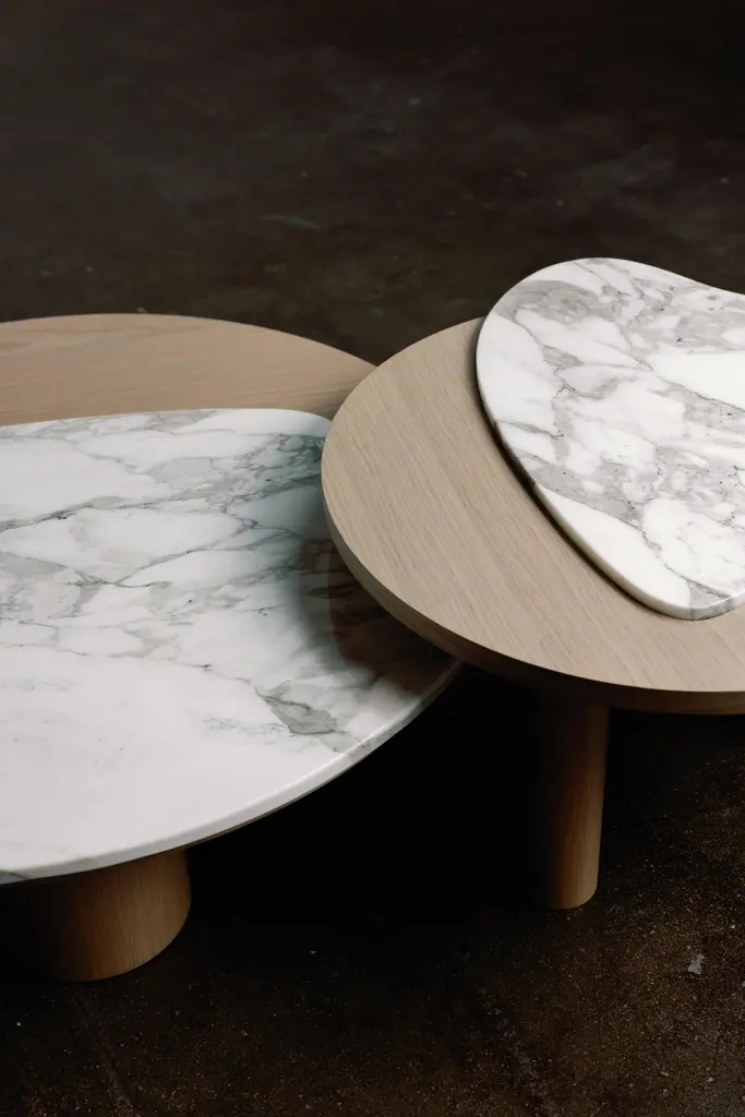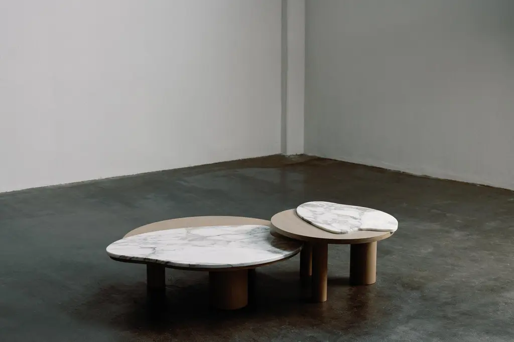 Modern Curve Nesting Coffee Tables Marble Oak Handmade In Portugal By Greenapple