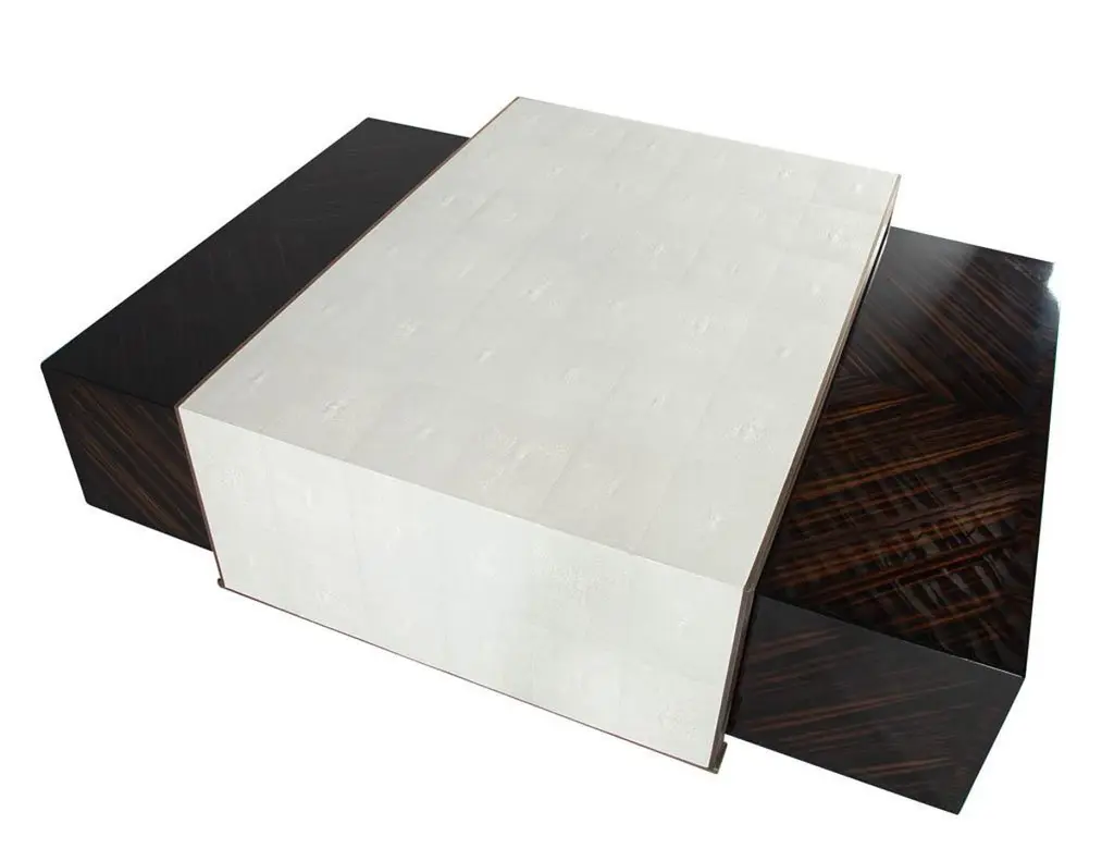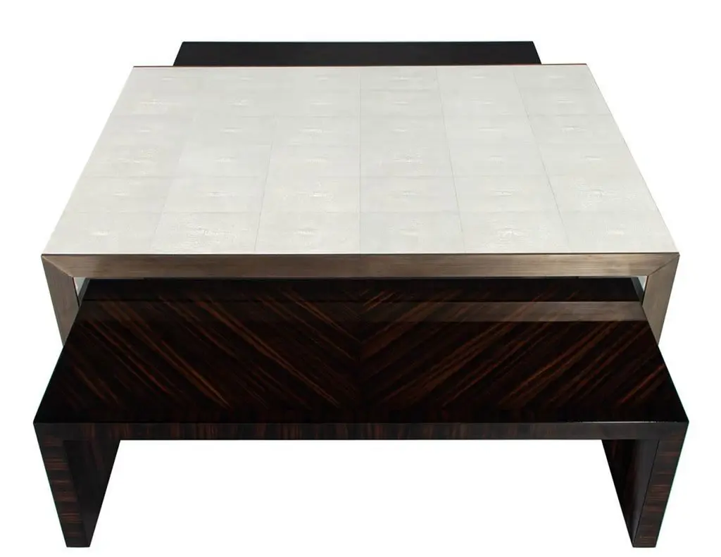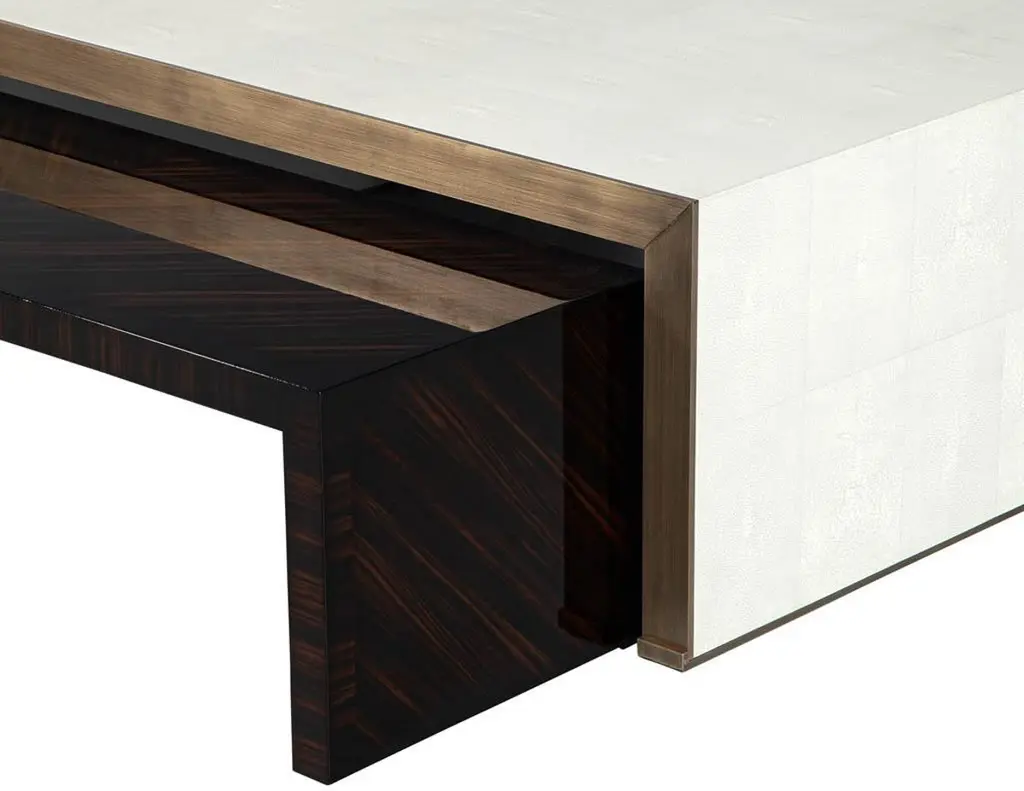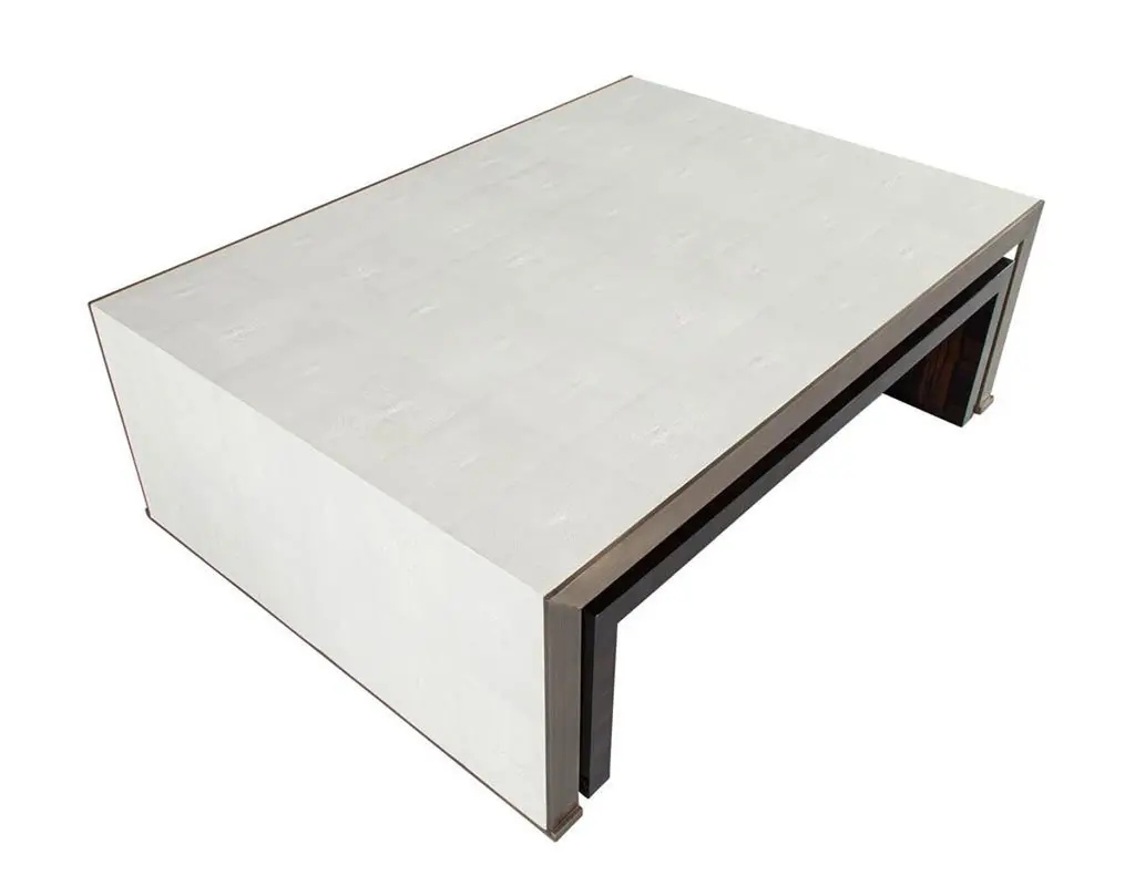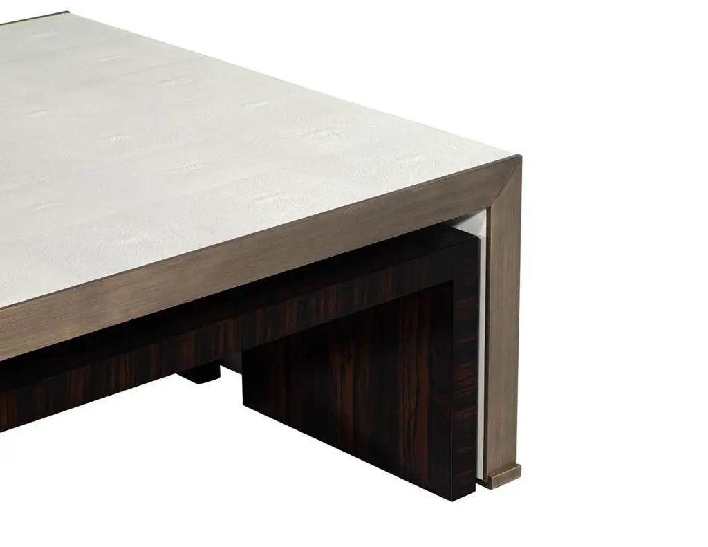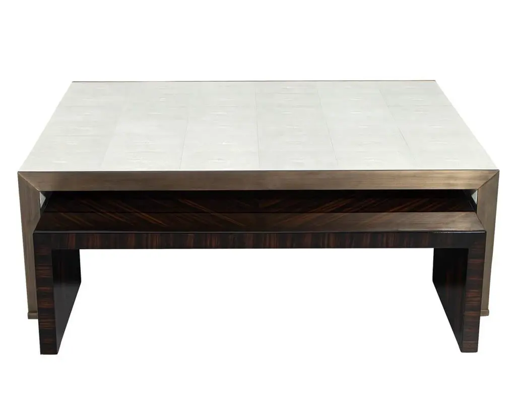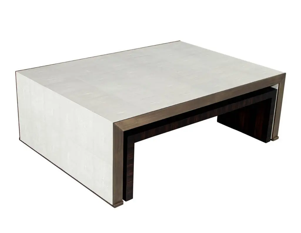 Modern Faux Shagreen Coffee Table With Macassar Nesting Tables