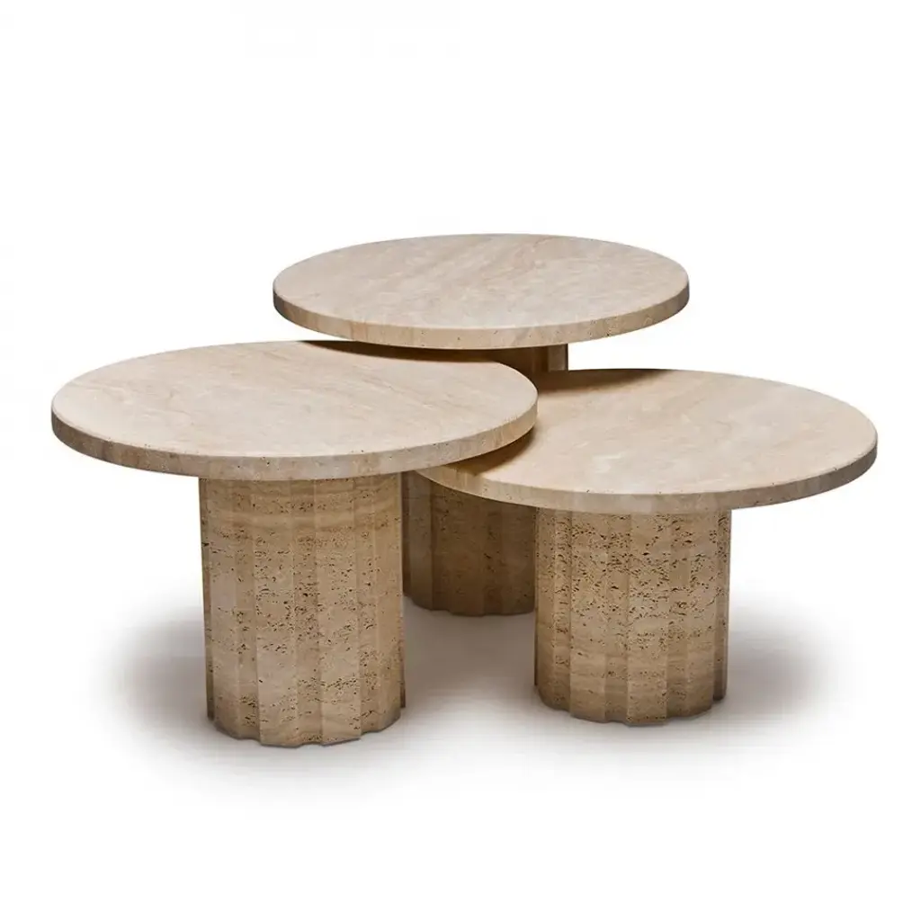 Modern Saara Set/3 Nesting Coffee Tables, Travertine, Handmade By Greenapple