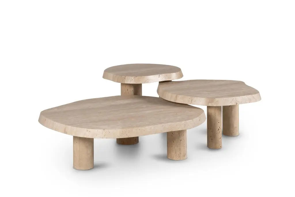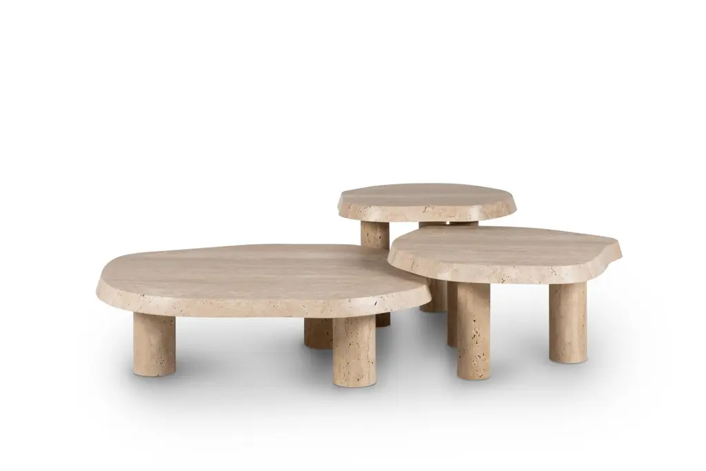 Set/3 Saara Nesting Coffee Tables, Contemporary Collection, Handcrafted in Portugal - Europe by Greenapple.The Saara marble coffee table set is a tribute to Africa’s scenic beauty and historical heritage. Its organic design mirrors the contours of the Sahara Desert, capturing the harmony between nature and craftsmanship. With its natural tones and sculptural form, the Saara marble coffee table brings warmth and character to contemporary interiors.The Saara coffee table set is entirely crafted from Travertine limestone in cream tones, making it suitable for indoor and outdoor use.The Saara coffee table set is customizable in terms of dimensions, materials and finishes.Set of 3 Saara coffee tables dimensionsSmall:W.63,5 x De.55,5 x H.45 cm.W.25 x De.21.9 x H.17.7 in.Medium:W.76 x De.69 x H.37,5 cm.W.29.9 x De.27.2 x H.14.8 in.Large:W.107 x De.91 x H.30 cm.W.42.1 x De.35.8 x H.11.8 in.Set of 3 Saara Nesting Coffee Tables Material CodesST065 Travertine Limestone, Honed, Beige, MatteHandcrafted in Portugal - Europe by GreenappleUnique by design, Crafted by peopleGreenapple transforms contemporary spaces into exclusive narratives of design and craftsmanship. From custom-made furniture to bespoke interiors, each creation is a timeless work of art, shaped by master artisans who honor centuries-old techniques.Founded in 2005 by Sérgio Rebola and Rute Martins, Greenapple has earned global recognition among high-end clientele and leading design firms. While Rute designs each unique piece, Sérgio ensures uncompromising quality from design to production and from production to your home. We provide a seamless experience, offering short production lead times, worldwide delivery within 7 to 10 days, and white-glove service upon request.For U.S. clients, we can handle all customs clearance, cover duties, and offer white-glove service as well upon request.Cocktail Table, Center Table, Centre Table, Low Table, Tea Table