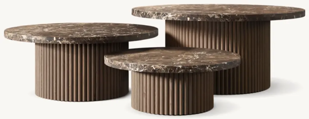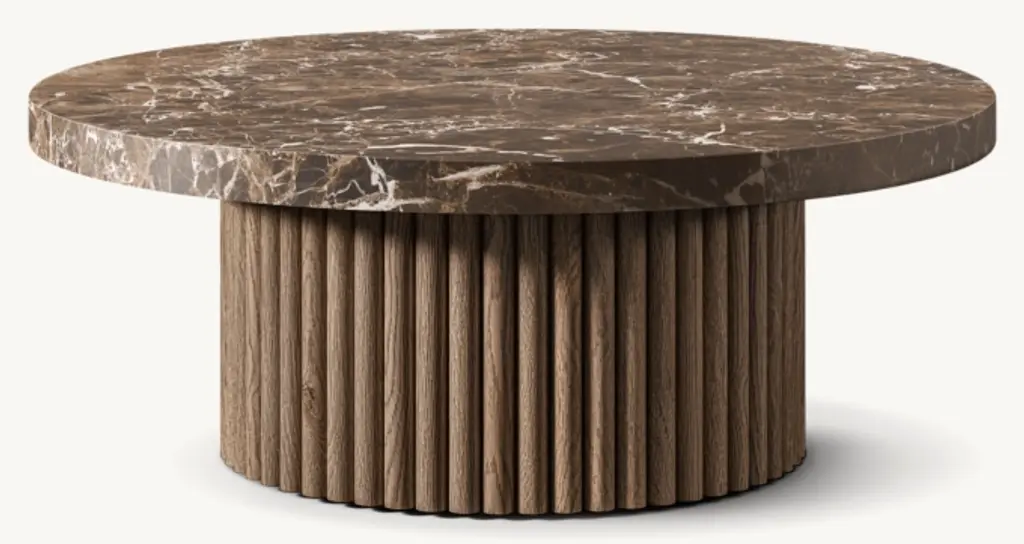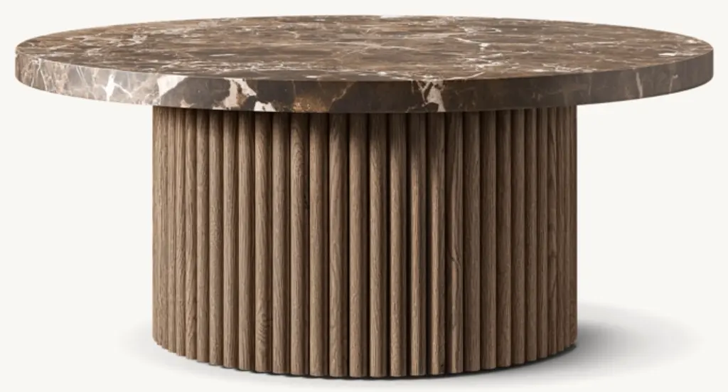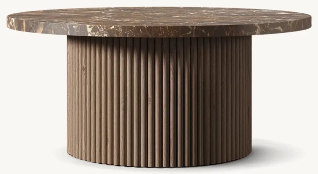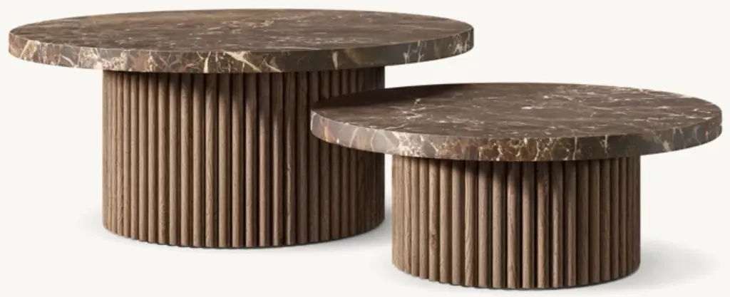 Defined by individually applied reeds of wire-brushed solid American white oak, Mulholland is the creation of celebrated design team Thomas Bina and Ronald Sasson. The collection features radius corners that curve around the side for an uninterrupted, fluid silhouette. Crafted of Emperador marble, the top is replete with rich veining and striking color contrasts that make each piece unique. SHOP THE ENTIRE COLLECTIONEXPLORE ALL REEDED COLLECTIONS