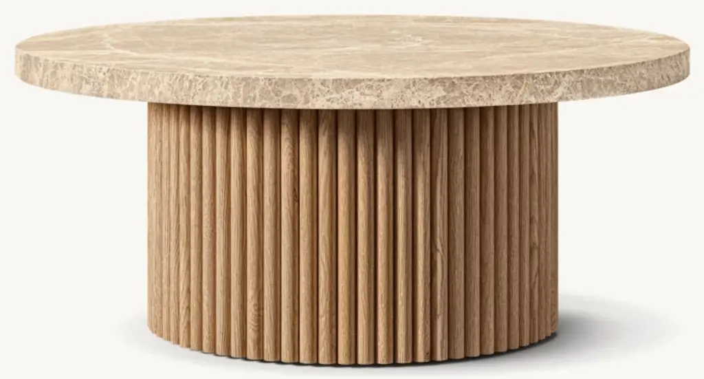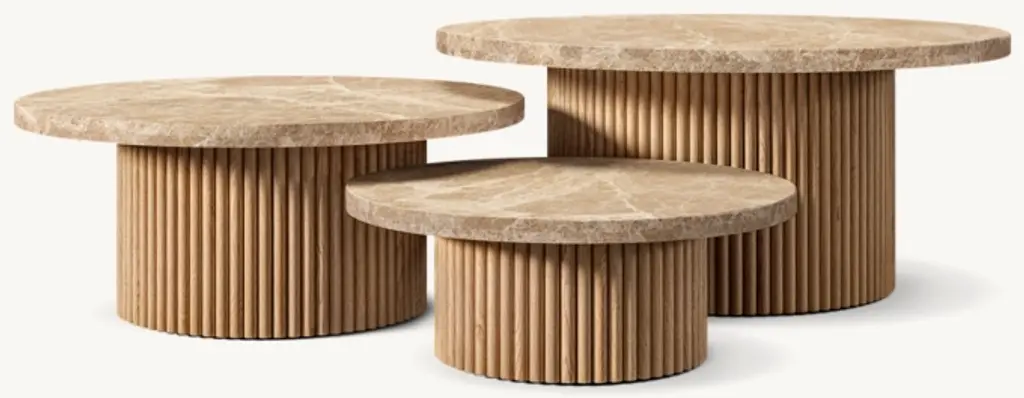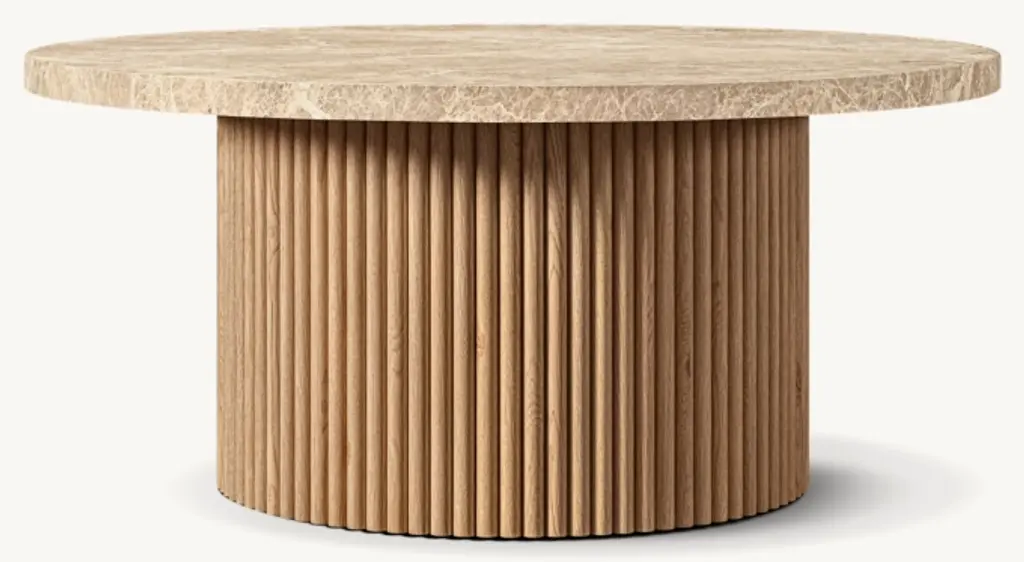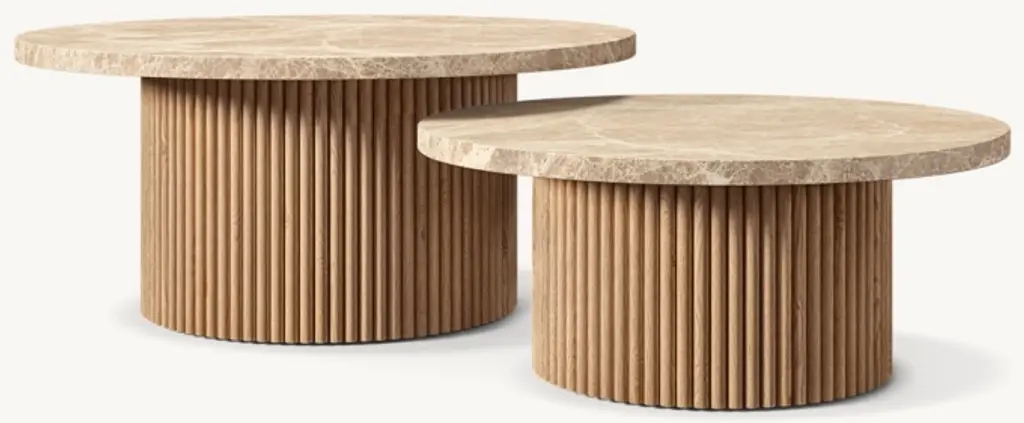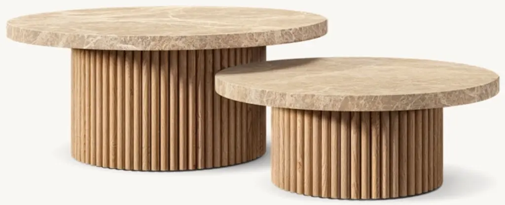 Defined by individually applied reeds of wire-brushed solid American white oak, Mulholland is the creation of celebrated design team Thomas Bina and Ronald Sasson. The collection features radius corners that curve around the side for an uninterrupted, fluid silhouette. Crafted of Emperador marble, the top is replete with rich veining and striking color contrasts that make each piece unique. SHOP THE ENTIRE COLLECTIONEXPLORE ALL REEDED COLLECTIONS