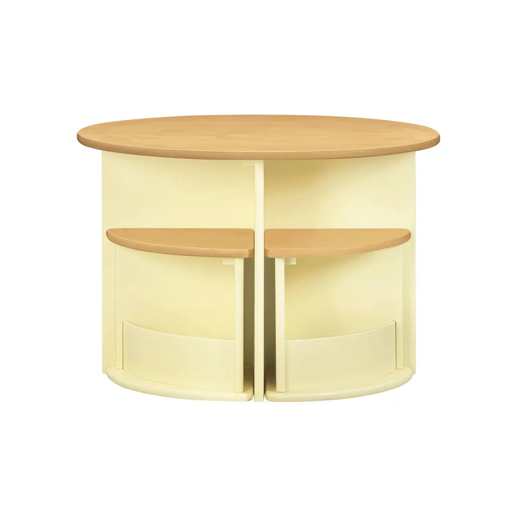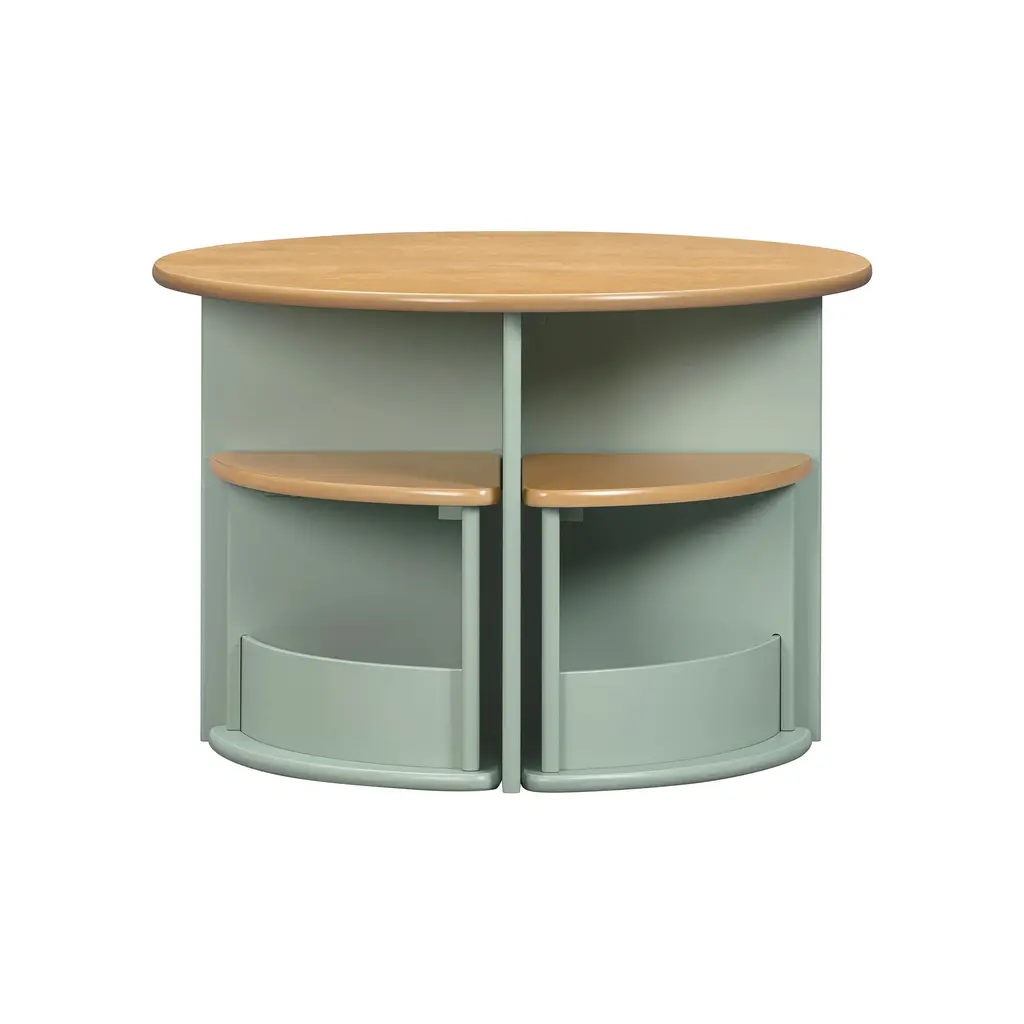 A delightful blend of function and fun for the playroom, the Nessa Nesting Play Table from Babyletto is a modern, space-saving essential. This clever set includes a low-profile table and four perfectly proportioned chairs that tuck seamlessly underneath to keep your space tidy. Each chair features a built-in cubby for stashing books or art supplies, keeping essentials off the floor and within easy reach. A fusion of thoughtful function and modern style, it’s the perfect spot for little creators. Highlights: