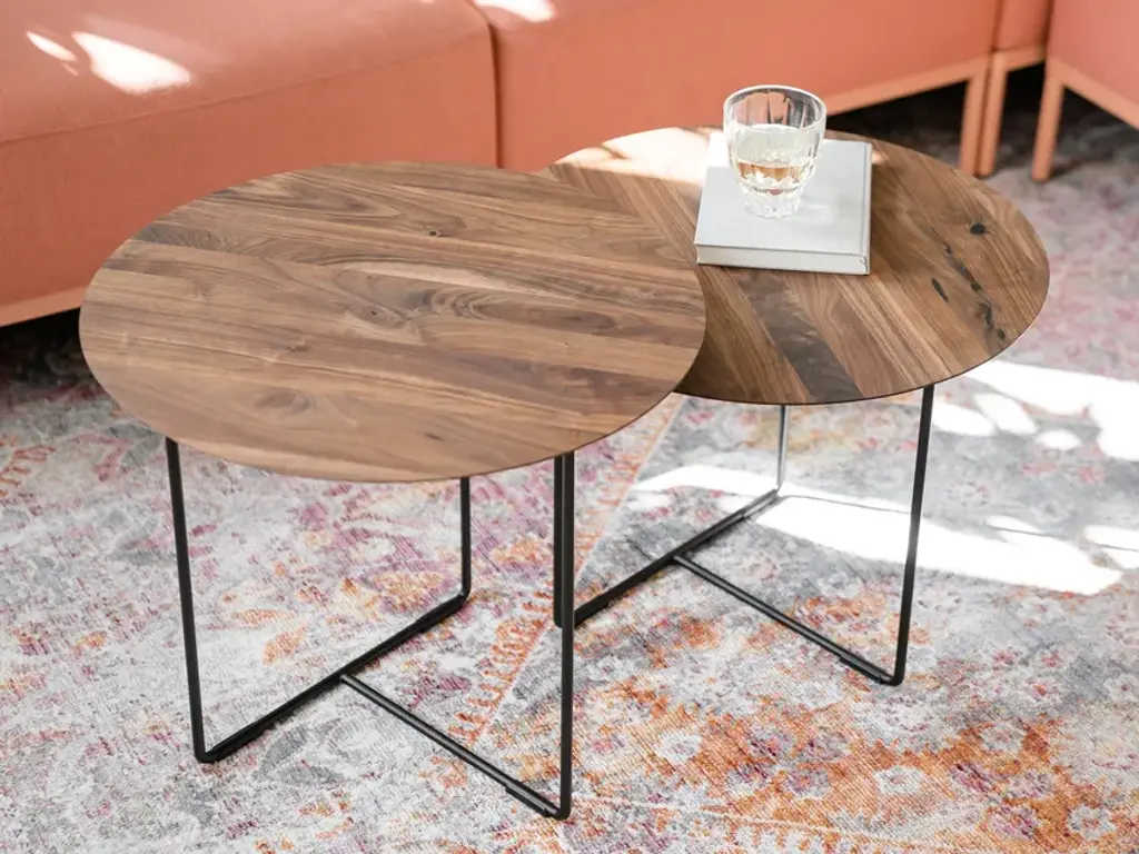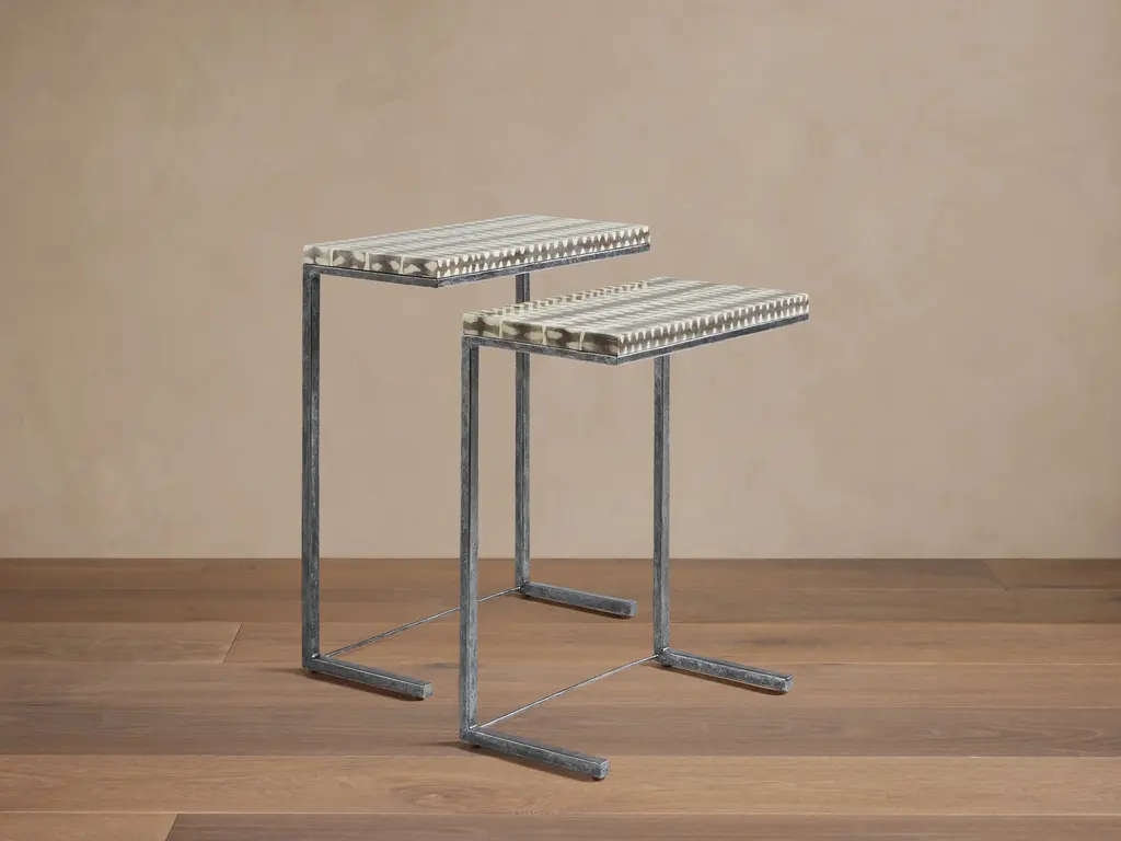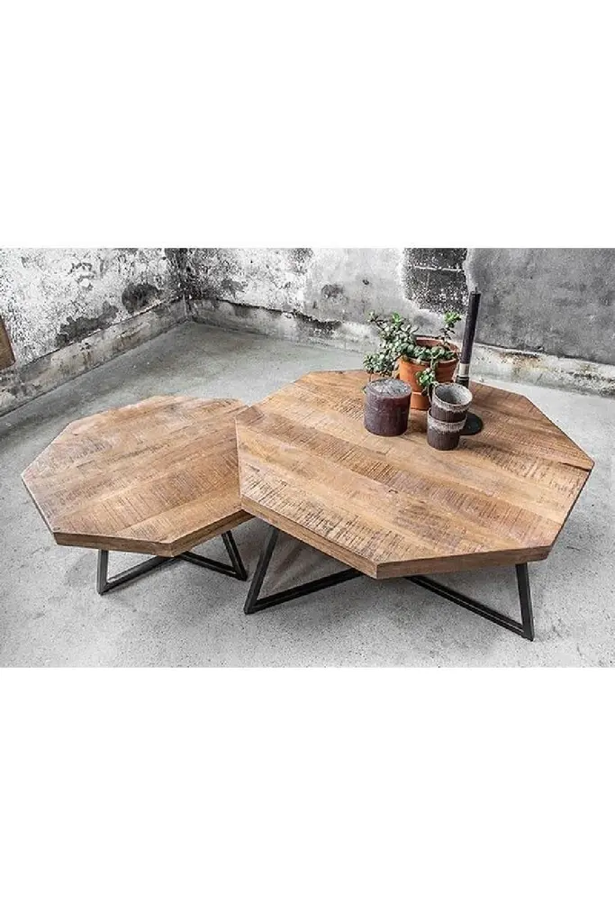 Bring a hint of industrial style to your space with this two-piece nesting table set. Featuring a matte black powder-finished steel base, each table features a clean-lined octagonal tabletop crafted of solid mango wood in a light finish to showcase the wood’s natural grain beauty. This duo can be spread throughout your space at your next soiree and nested when not in use for easy storage.