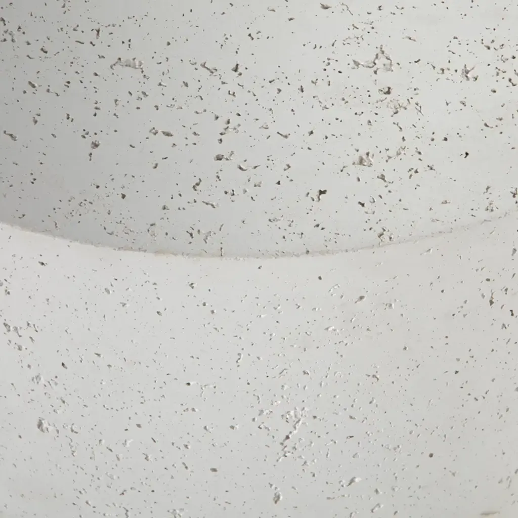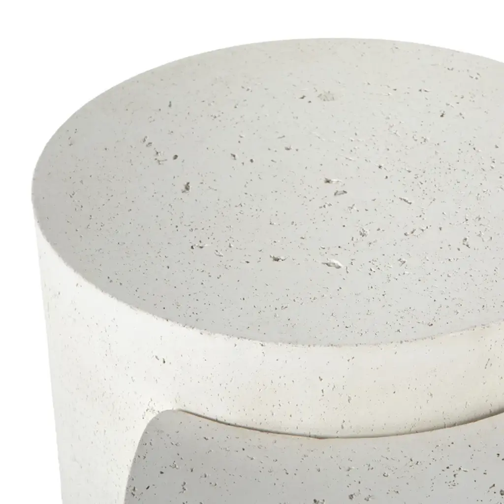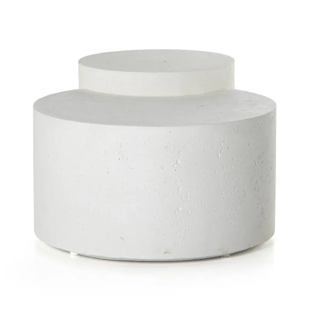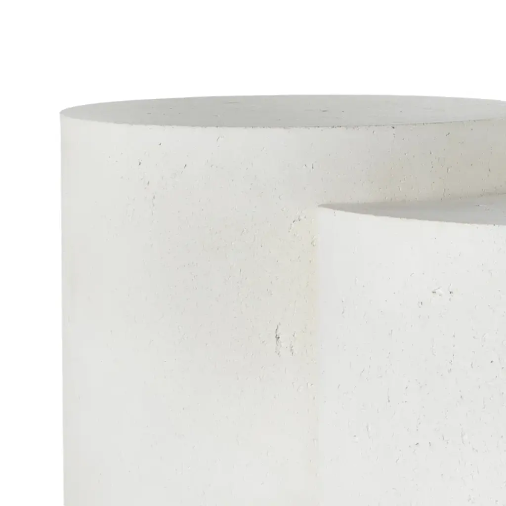 Made from white-finished concrete with deep, textured pitting inspired by mid-century coral décor, a nesting coffee table features two tiers for a layered look with modernity. Indoors or out; cover or store inside during inclement weather and when not in use.