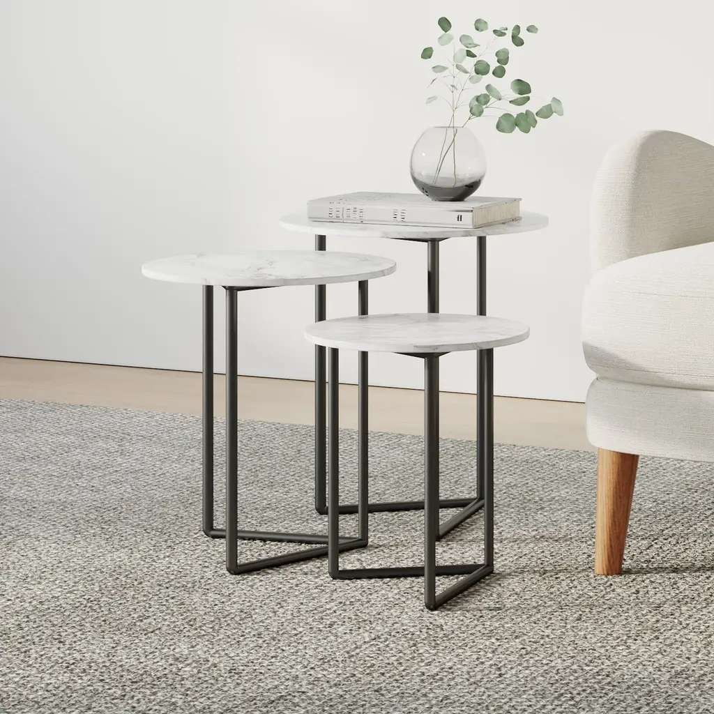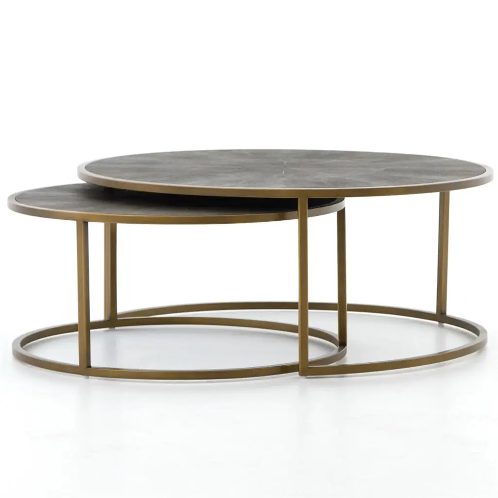 This Nesting Coffee Table Set by Ethnicraft captures the beauty of your environment on its reflective surface. The heavy aged mirrors ooze vintage vibes, while its metal frame brings you right back to modern times. These space-savvy round tables offer a clever and classic design. The smaller table smoothly tucks away under the larger one, creating a seamless and unobtrusive storage solution when not in use.