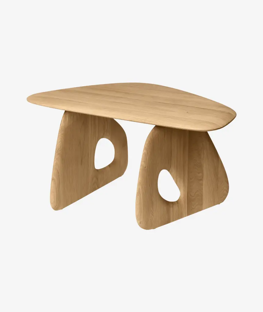 The Oar Coffee Table combines elegance with thoughtful design, featuring soft, flowing curves and a unique cut-out detail in its legs. Crafted from FSC™-certified solid oak with a natural oiled finish, brass feet enhance its sophistication while ensuring stability on various surfaces. Designed with versatility in mind, the table comes in two shapes that nest seamlessly, offering flexibility for individual use or as a combined surface. The table is flat-packed for easy assembly, making it a practical and refined addition to any living space.