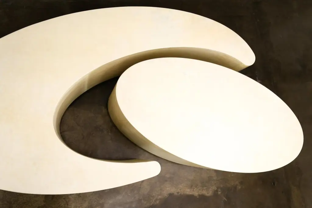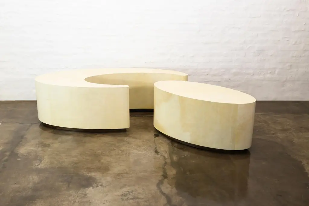 Cadenza Parchment Modern Sculptural Nesting Coffee Tables.The Cadenza Nesting tables are handcrafted out of wood wrapped with geniune Argentine Goatskin, shown here in a natural finish, and can be pushed together to form one large oval, or moved around separately to create a dynamic composition. Available as shown or in custom sizes, shapes, materials and finishes. Other materials available are Argentine Rosewood, Oak, Walnut, Maple, Cherry, Beech, Elm, Okume, Teak, African Teak, Black Maple, Bubinga, Cerused Oak, Cerused Gray Oak, Gray Oak, Ebony, Macassar Ebony, Striped Macassar Ebony, Walnut Burl, Sycamore, and Zebrawood. Available in matte, semi-gloss, high gloss finish or lacquered. Parchment Modern Sculptural Nesting Coffee Tables, CadenzaParchment Modern Sculptural Nesting Coffee Tables, CadenzaAbout Costantini DesignCostantini has been a trusted source for custom furniture, objects and lighting for a global client base since 2002. Its founder and owner, William Stuart, is a designer and artist who began his career as a multimedia artist and sculptor, practices which continue to inform the work. With a studio showroom in New York and a team of artisans at their own workshop in Buenos Aires, the Costantini team is able to connect artisans and artists with acclaimed clientele around the world. Its artisans work across many disparate materials such as bronze, solid wood, fiberglass, steel, plaster, goatskin, leather, rush, iron, marble, sheepskin and more. Visit their New York or Buenos Aires locations by appointment.