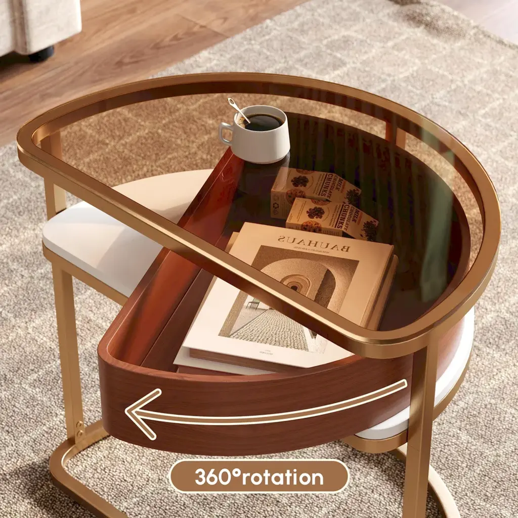 Rectangular Glass Lift Top Nesting Coffee Table Set