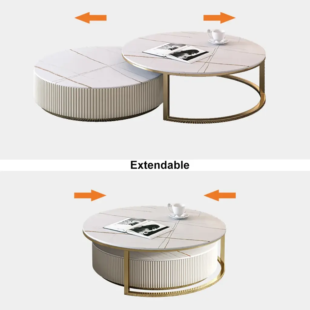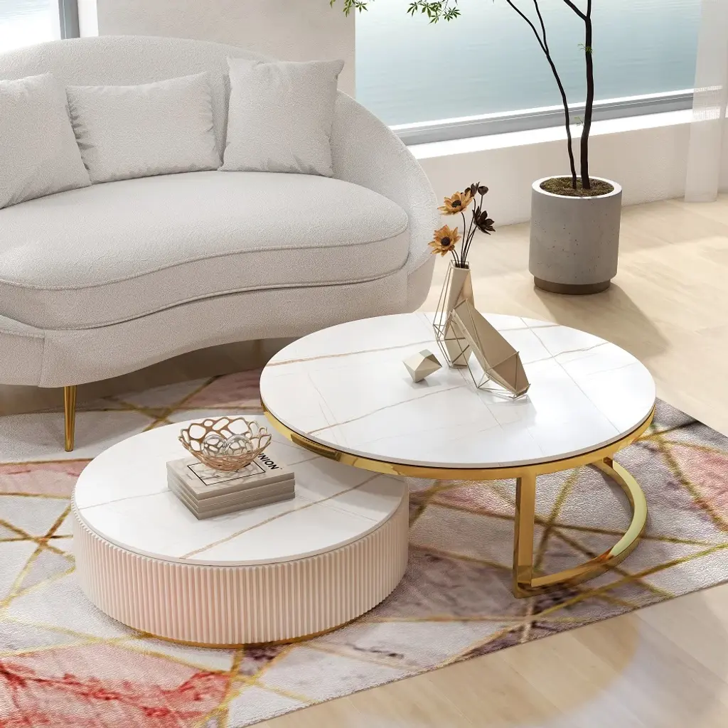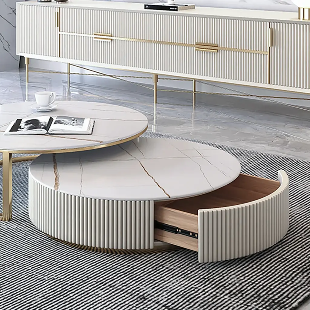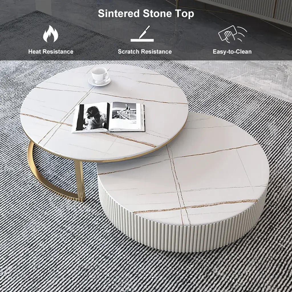 Round 2-Piece Nesting Set Sintered Stone Top Beige Coffee Table With Drawer
