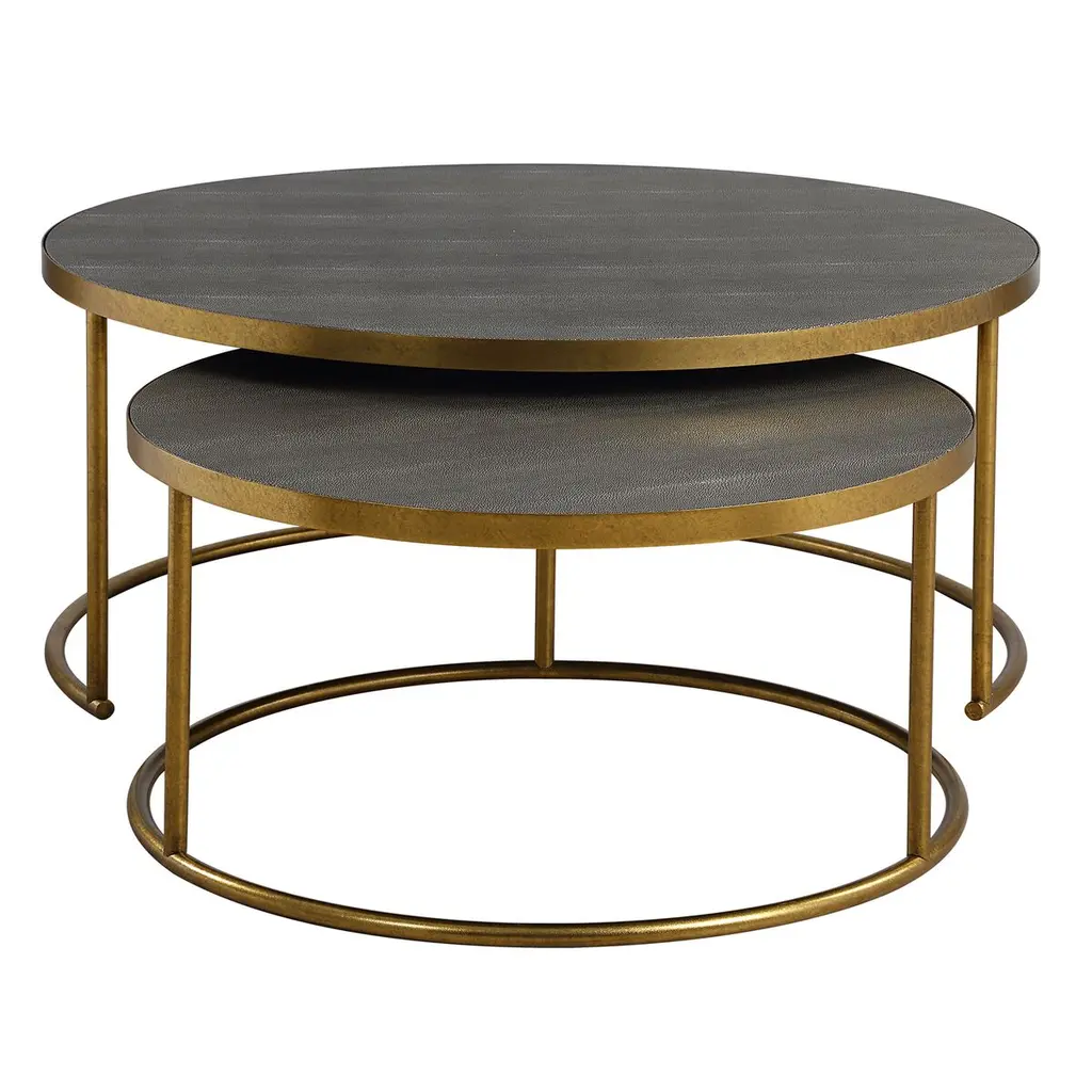 S/2 Emiliano Faux Shagreen Nesting Coffee Tables, Brass/gray