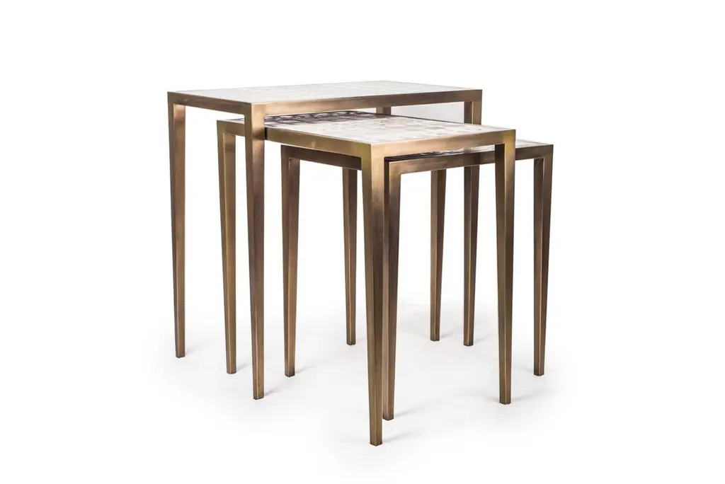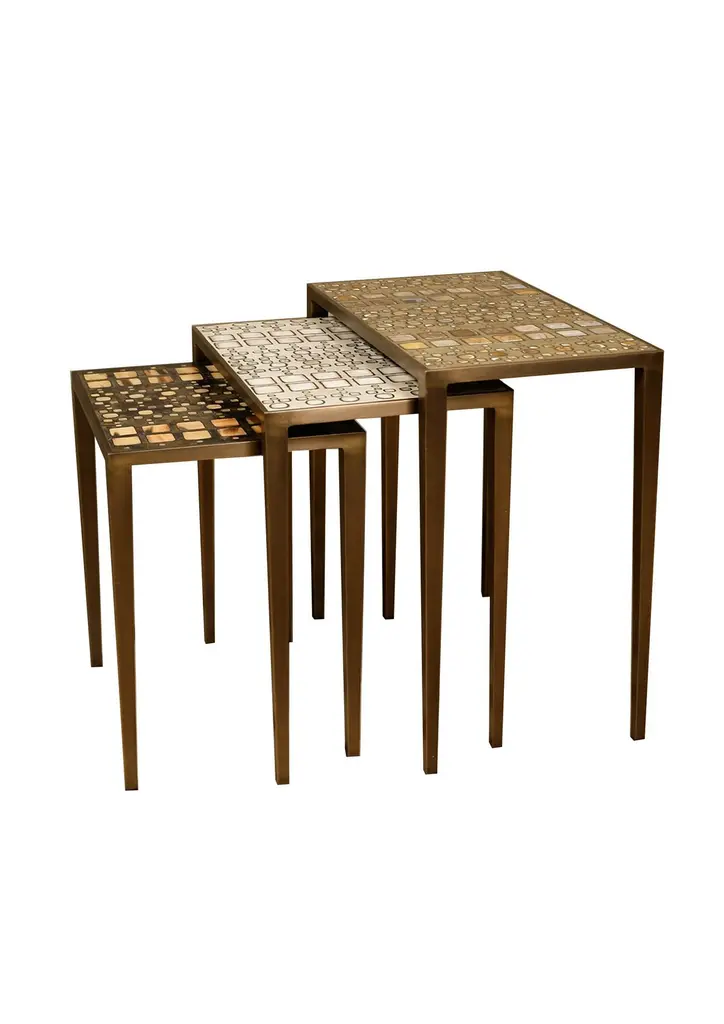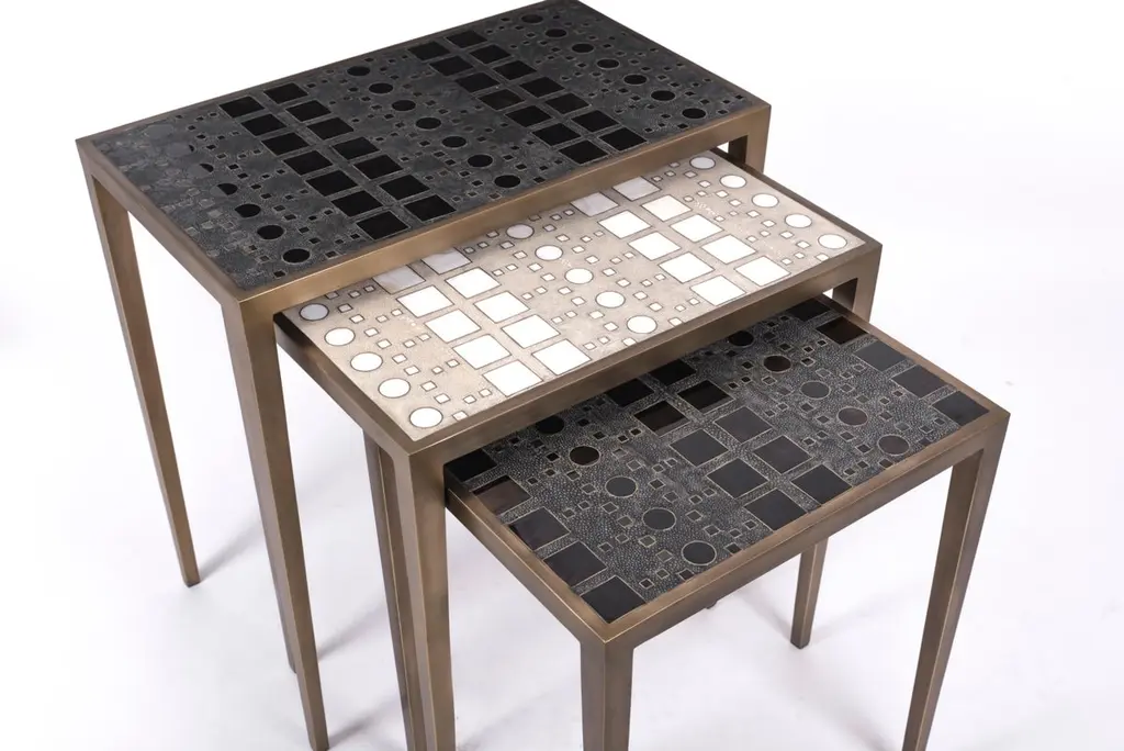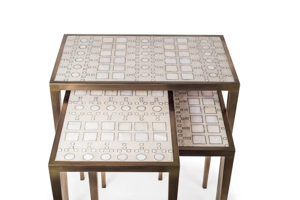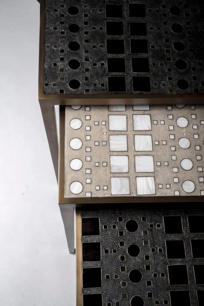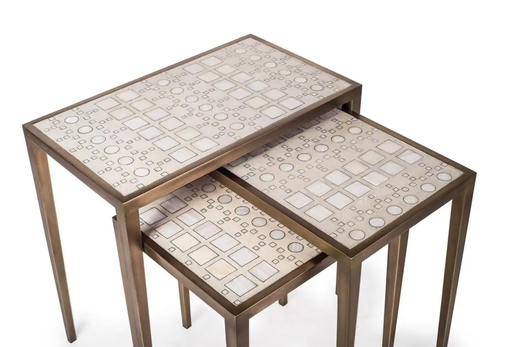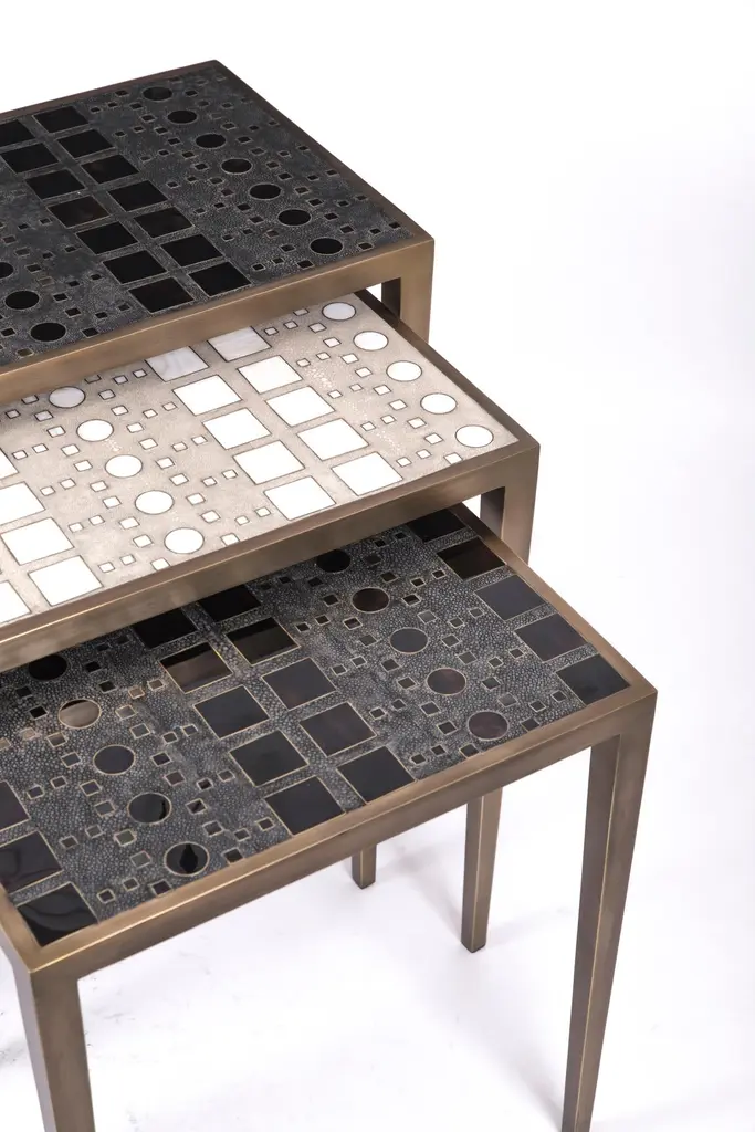 Set Of 3 Klimt Nesting Tables In Shagreen, Shell, & Brass By R&y Augousti
