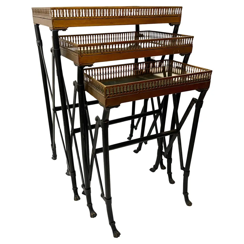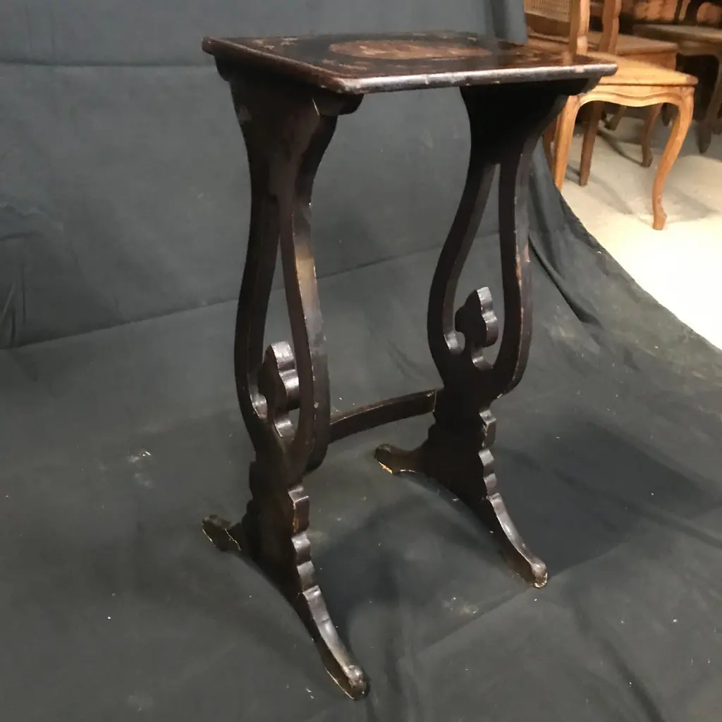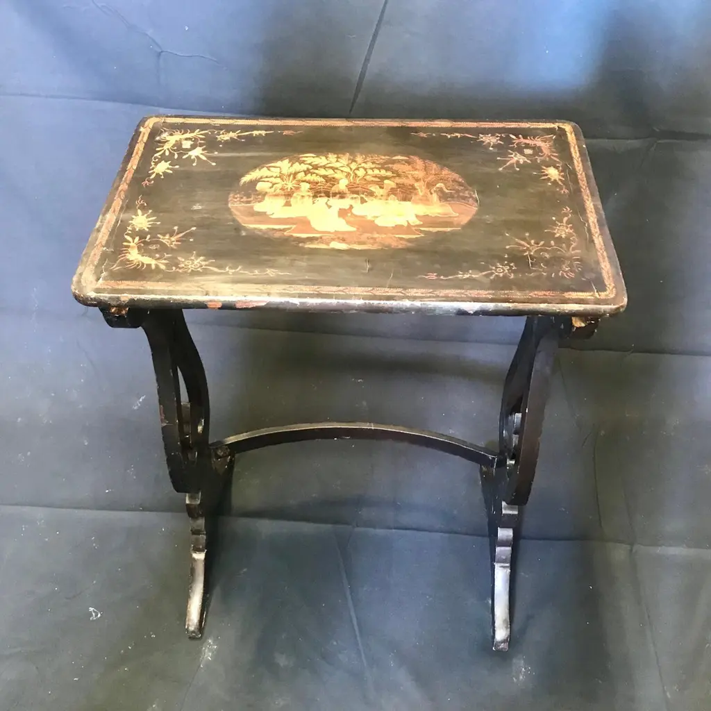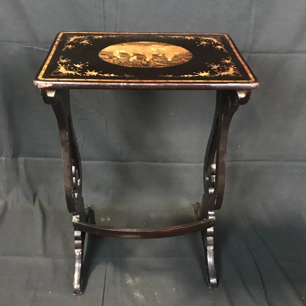 Set Of Four Japanned French Chinoiserie Style Hand Painted Nesting Tables