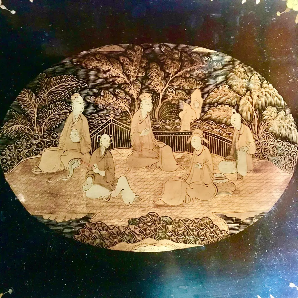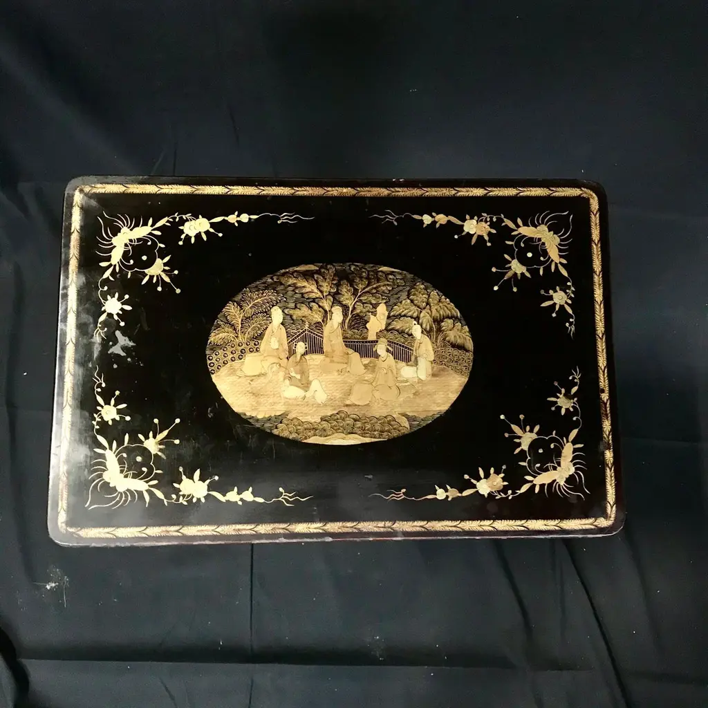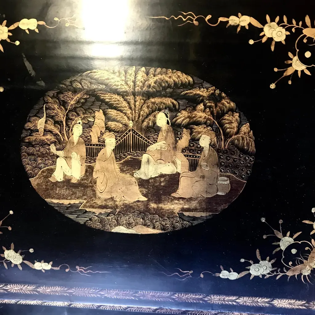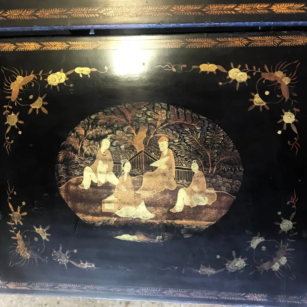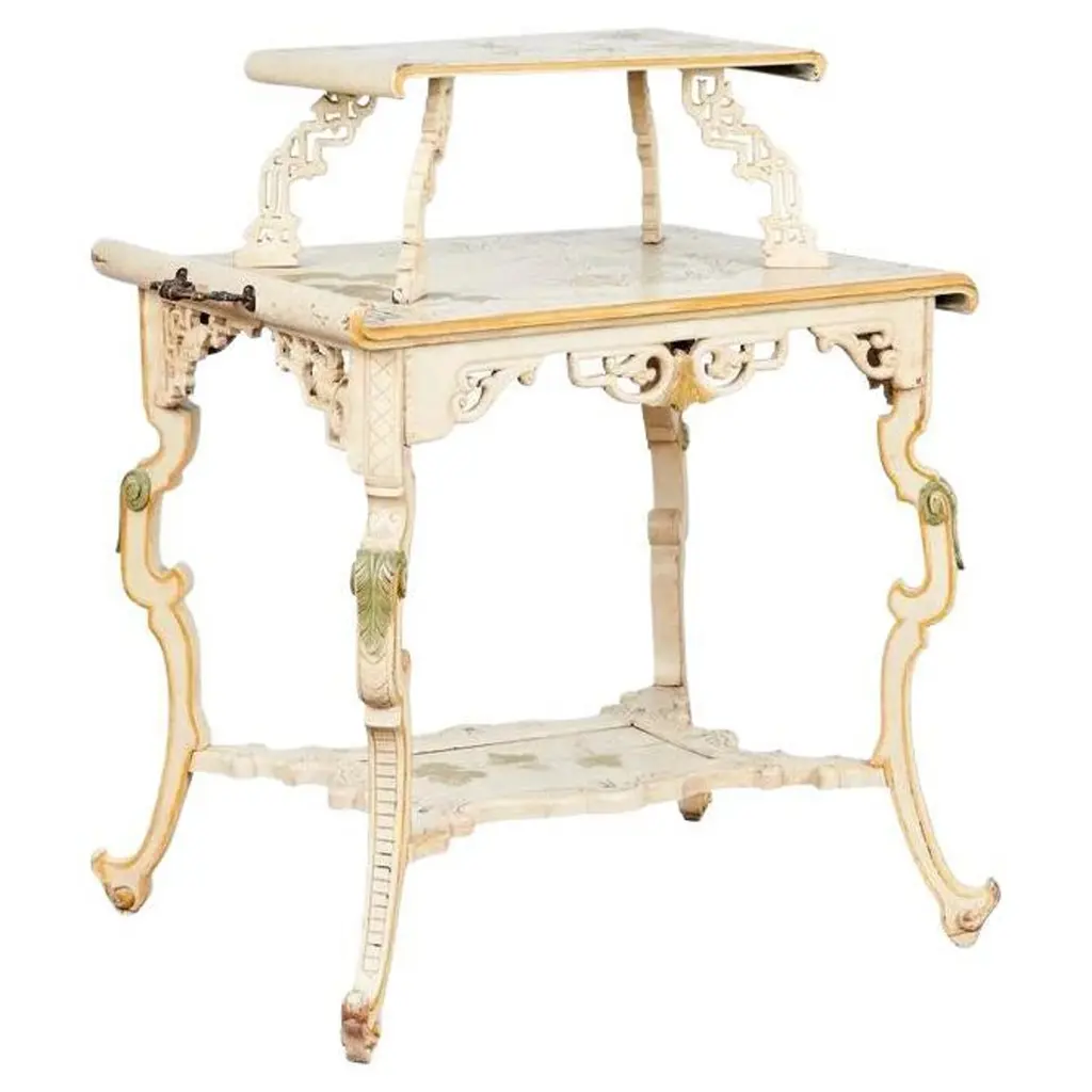 Set Of Four Japanned French Chinoiserie Style Hand Painted Nesting Tables