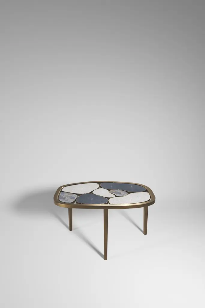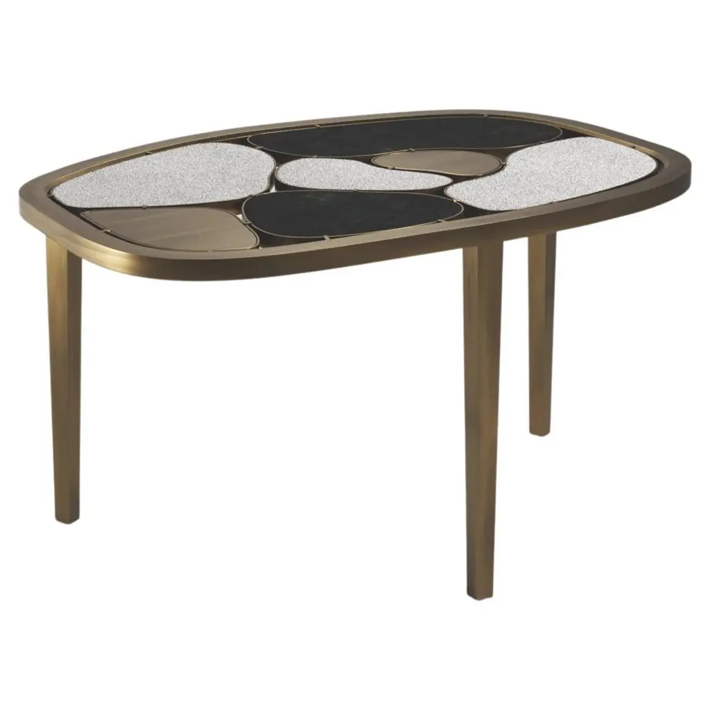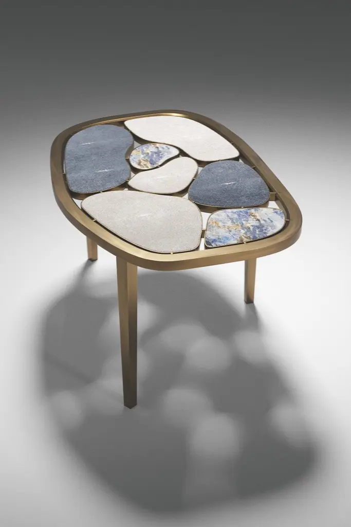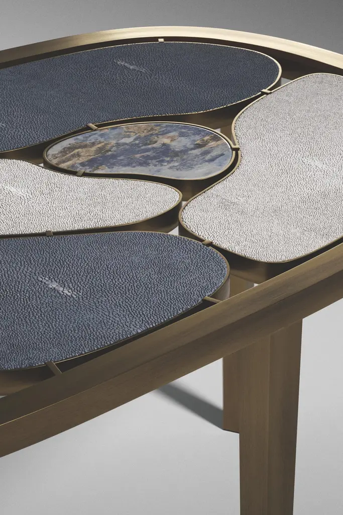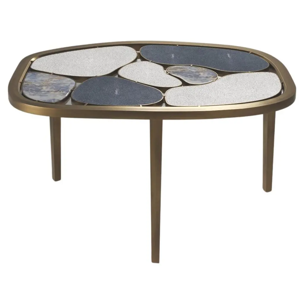 Shagreen And Stone Inlay Nesting Coffee Table With Brass Details By Kifu Paris