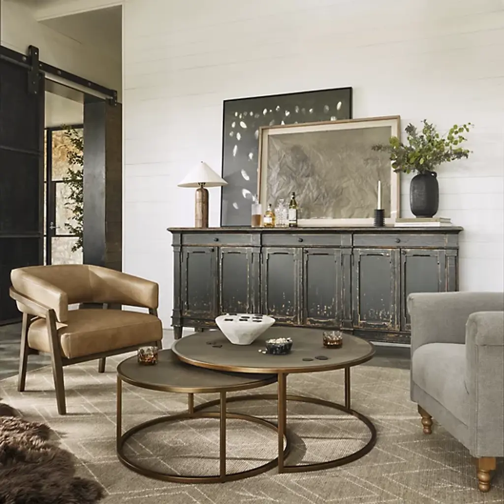 The Shagreen Nesting Coffee Table by Four Hands features a streamlined framework of iron. This coffee table is an exemplar of functionality. Ovular tabletops are arranged in a tired manner for ease of display. Your table’s surfaces are composed of durable resin, giving the Shagreen a rustic modern look. The Shagreen Coffee Table’s bases have neat contours, allowing the shorter segment of this multi-level furnishment to effortlessly slide within the frame of the other.