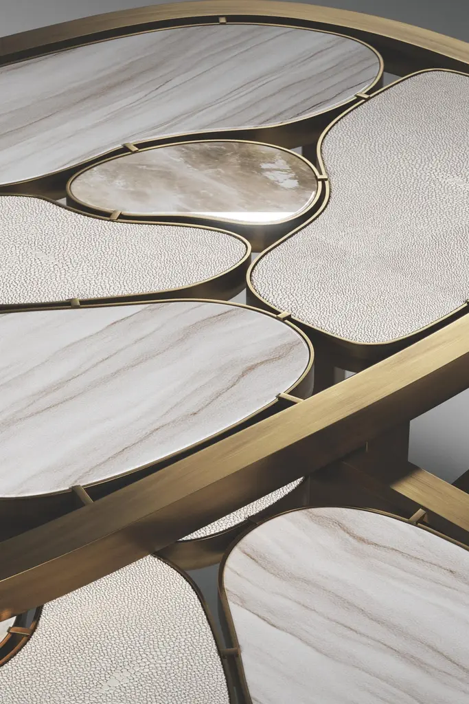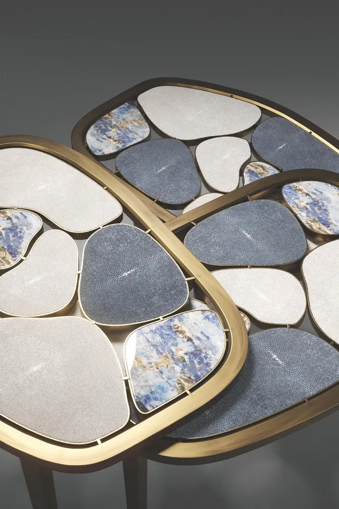 Shagreen, Quartz & Onyx Nesting Coffee Table With Brass Details By Kifu Paris