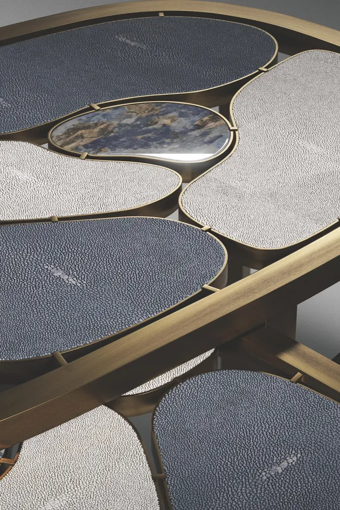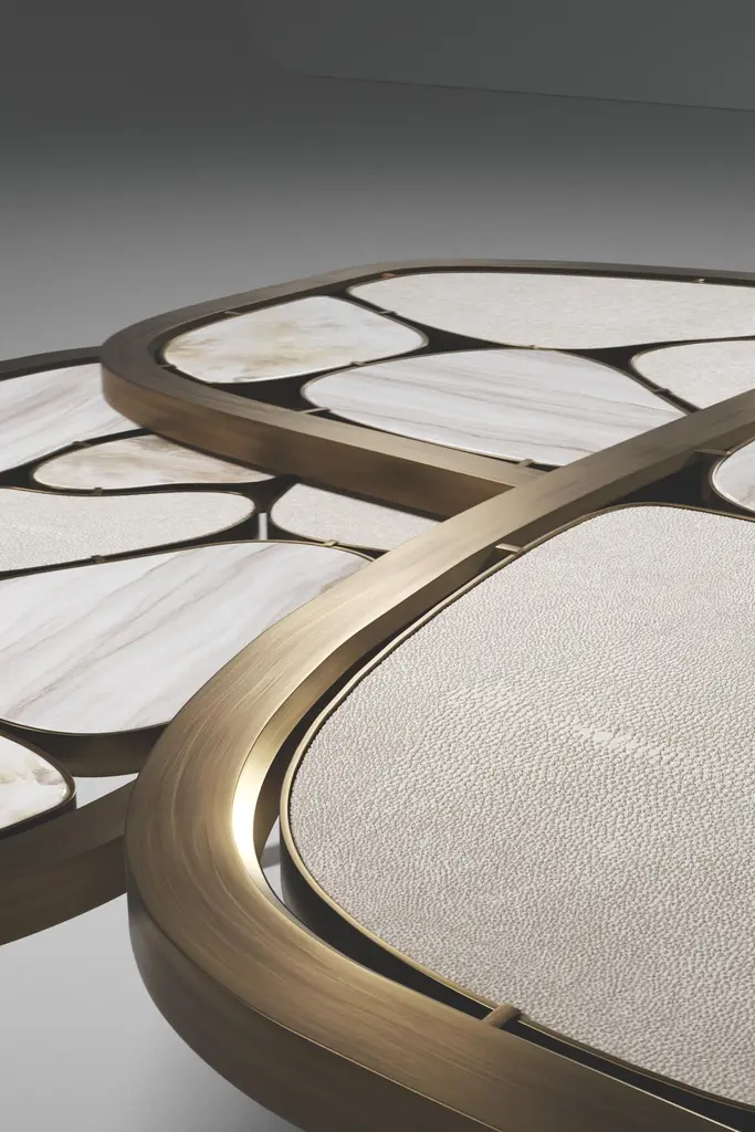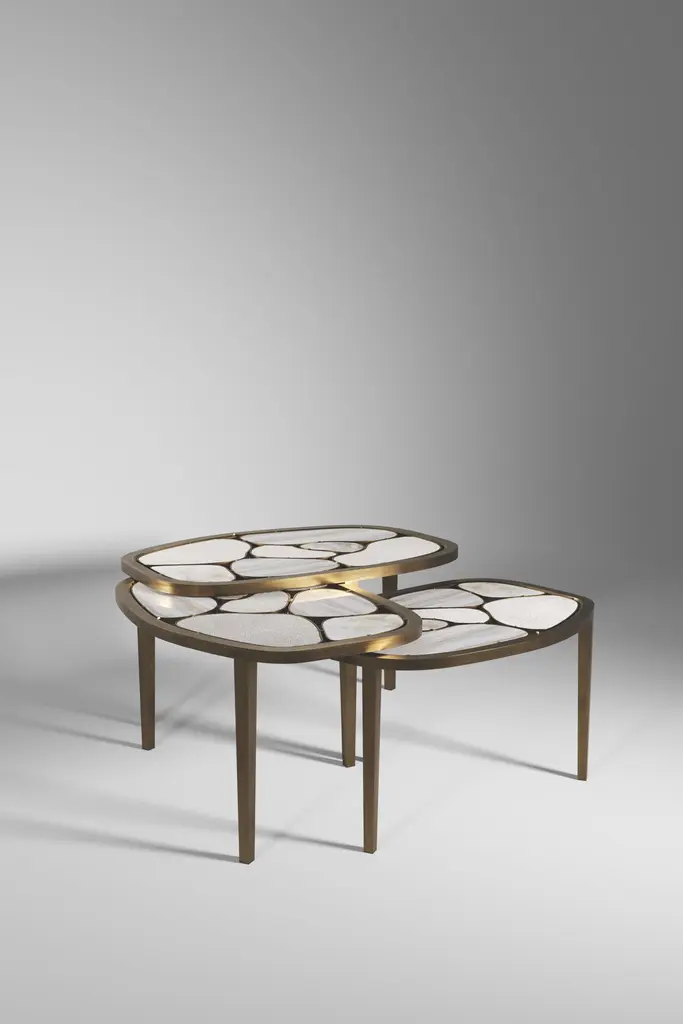 Shagreen, Quartz & Onyx Nesting Coffee Table With Brass Details By Kifu Paris