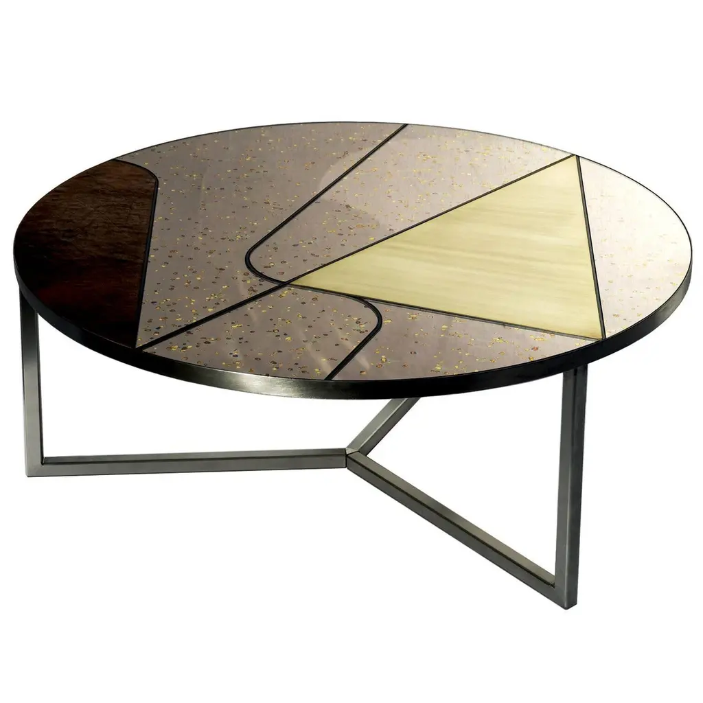 The Paris based label has distinguished themselves since their launch, with their iconic use of shagreen mixed with brass and other exotic materials. All furniture is handcrafted by skilled artisans, ultimately making each piece unique, designed in Paris and created in the Philippines.The Large Atlas Nesting Coffee Tables by Kifu Paris is a whimsical and geometric piece inspired by Earth's organic tectonic plates constantly moving to form and create new shapes. The organic parts, interconnected by bronze-patina brass links, are inlaid in mixture of cream shagreen, onyx and smokey white quartz. The frame and legs are also in bronze-patina brass. This listing is to purchase the large size, the other size tables are available to purchase on separate listings as well as a set. This piece is designed by Kifu Augousti the daughter of Ria and Yiouri Augousti. Large Atlas Nesting Coffee Table70 x 49 x 40 cmMedium Atlas Nesting Coffee Table60 x 41.5 x 37 cmSmall Atlas Nesting Coffee Table53 x 36.5 x 34 cmThe finish of the shagreen is authentic as it is hand-dyed and the designer calls the finish look: "antique natural shagreen."All Kifu Paris pieces are handmade by artisans, ultimately making each piece unique.Custom color/sizing available on request.Wipe clean with soft dry cloth.Although inspired by her parents, her collection of Home Accessories and Furniture is a distinct identity of its own. Kifu uses handmade techniques of elaborate inlay patterns of shagreen, shells, semi-precious stones, materials she experienced as a child growing up in her parent’s studio, but interpreted in a younger quirkier way reflecting her youth. From her "jewelry inspired knobs" on decorative boxes, gold bar boxes and an extravagant inlay pattern mix of shagreen and shell inspired by galactic constellations, as seen on her enormous round mirror, is refreshing to see. Kifu embodies whimsical elements throughout her collection and is not afraid to be daring and unexpected in her approach to design.All shagreen-covered items should be kept out of direct sunlight, color variants may occur on the stingray and other exotic finishes, but this showcases the Parisian label's commitment to creating authentic luxurious products using natural components.