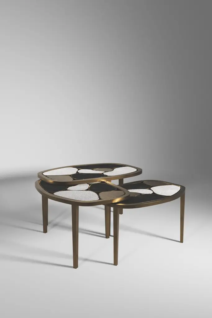 Shagreen, Quartz & Onyx Nesting Coffee Table With Brass Details By Kifu Paris