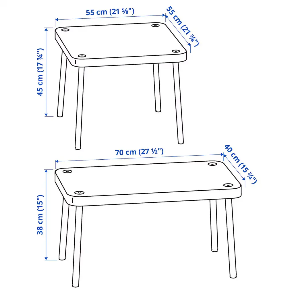 SONHULT Nesting tables, set of 2 - yellow/birch effect. These 2 lightweight nest tables help you use limited floor space in a smart way since they can be positioned partly together, separately or pushed completely together to save space. Recommended for indoor use only.