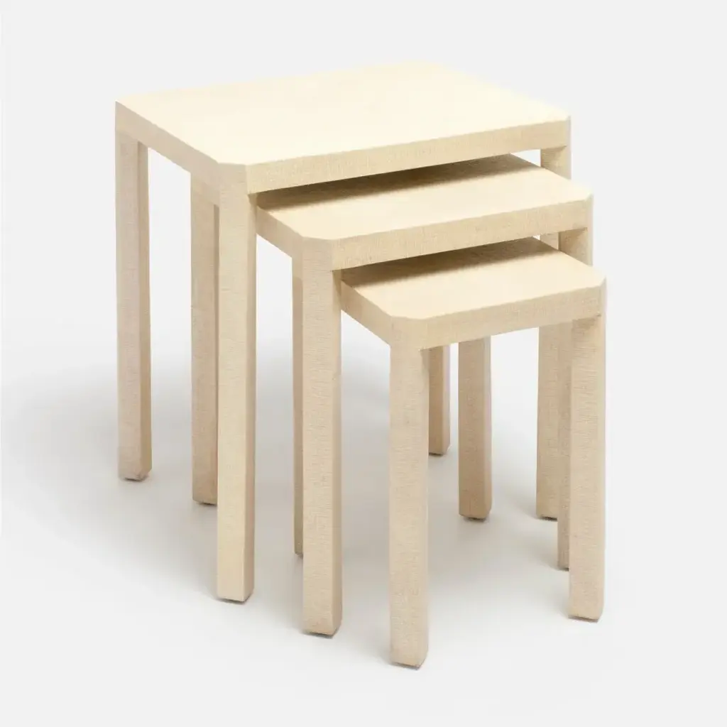 Taylam Off-White Faux Raffia Nesting Tables 14"l X 13"w X 18"h 18"l X 17"w X 21"h 22"l X 18"w X 24"h