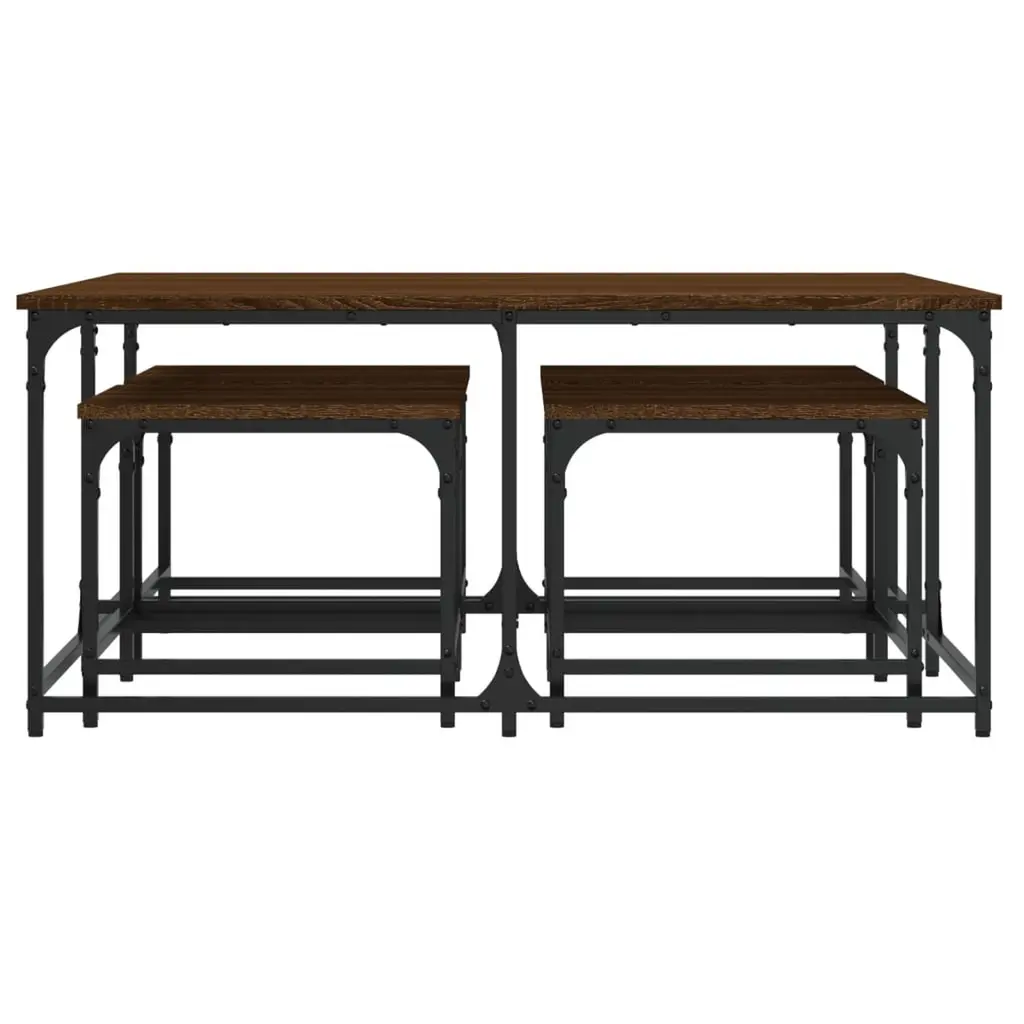 Vidaxl Nesting Coffee Table Brown Oak Engineered Wood, Metal Large