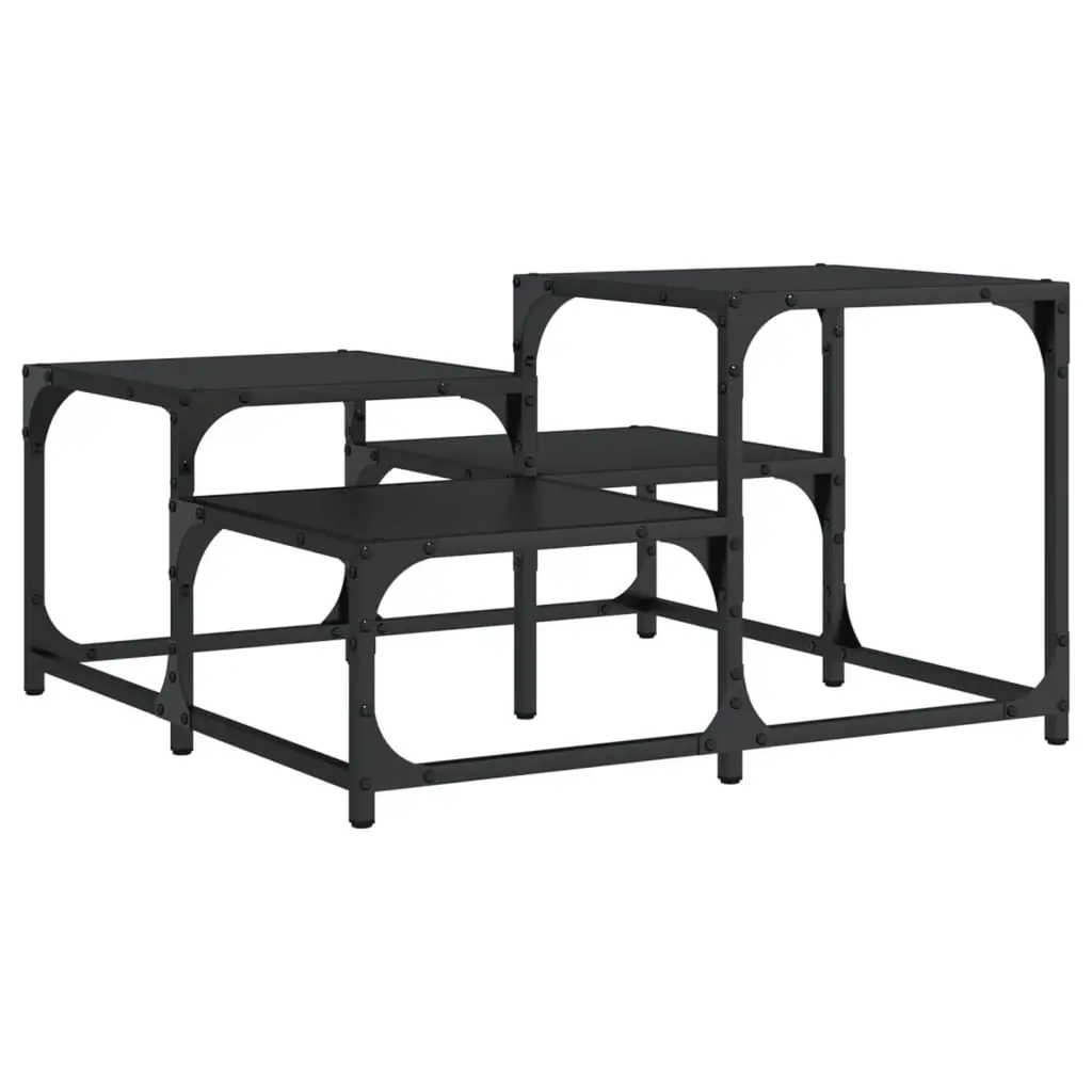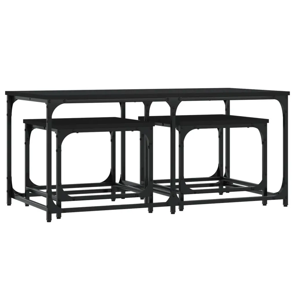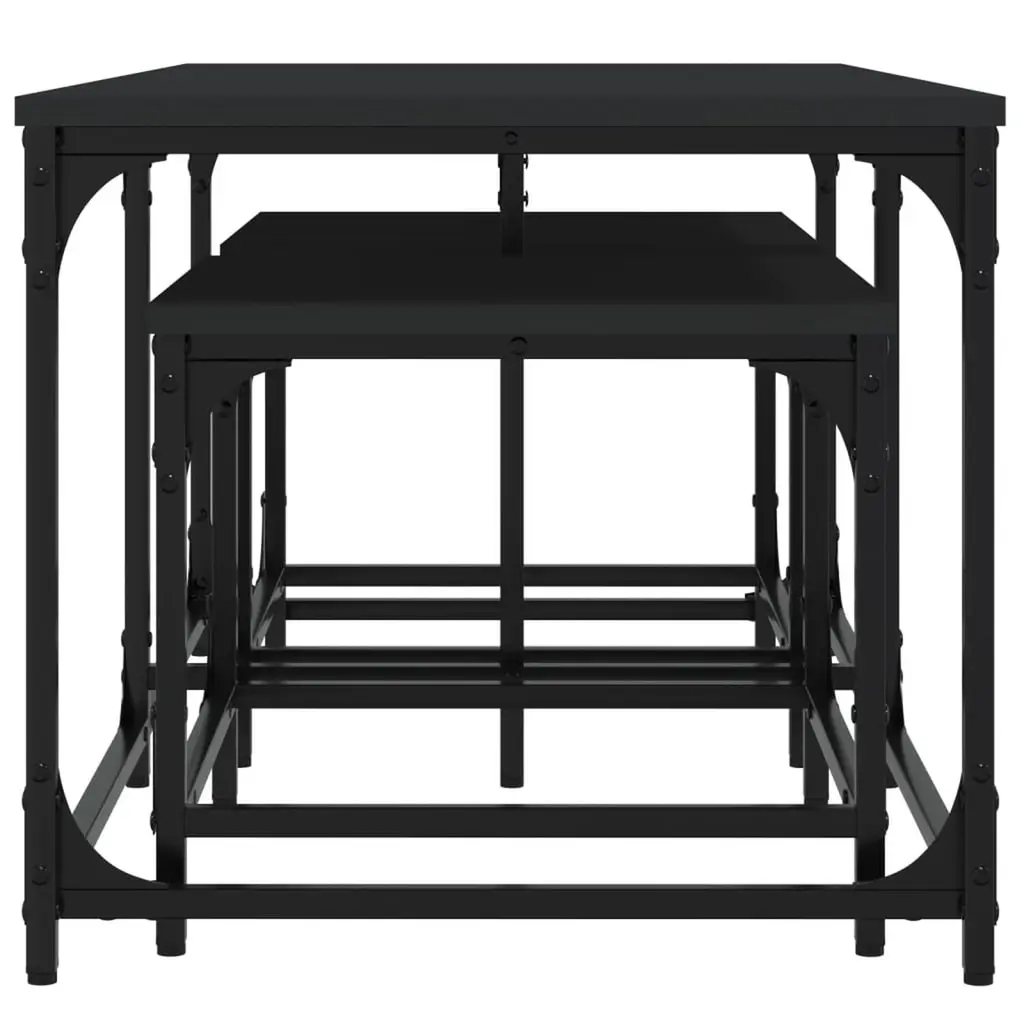 Vidaxl Nesting Coffee Table Set Of 3 Black Engineered Wood, Metal