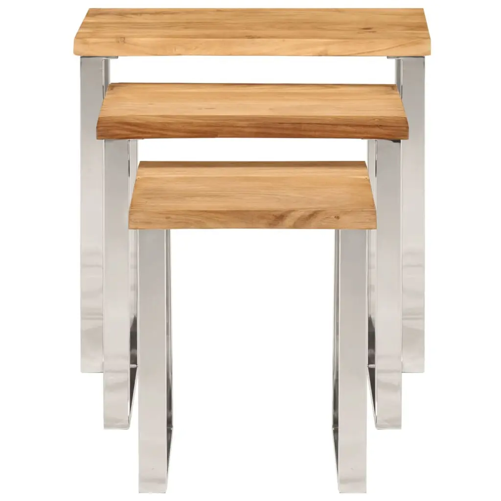 Vidaxl Nesting Table Brown Solid Acacia Wood Small, Medium, Large