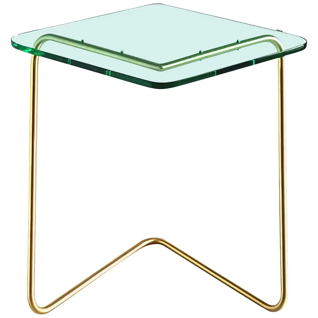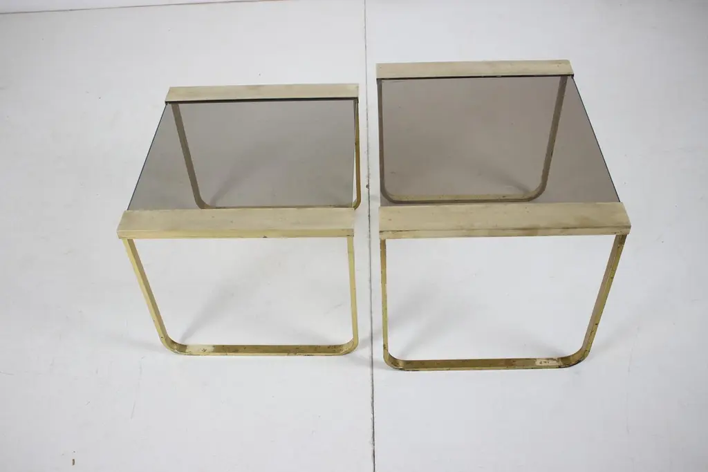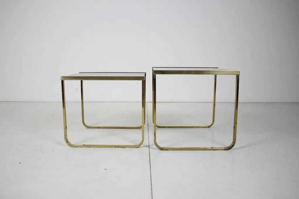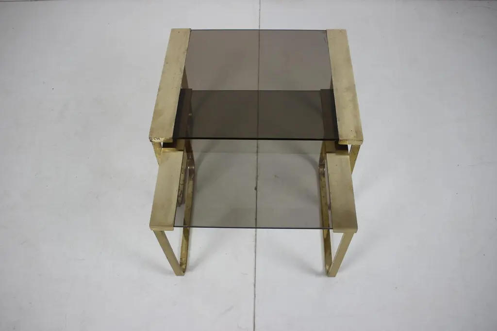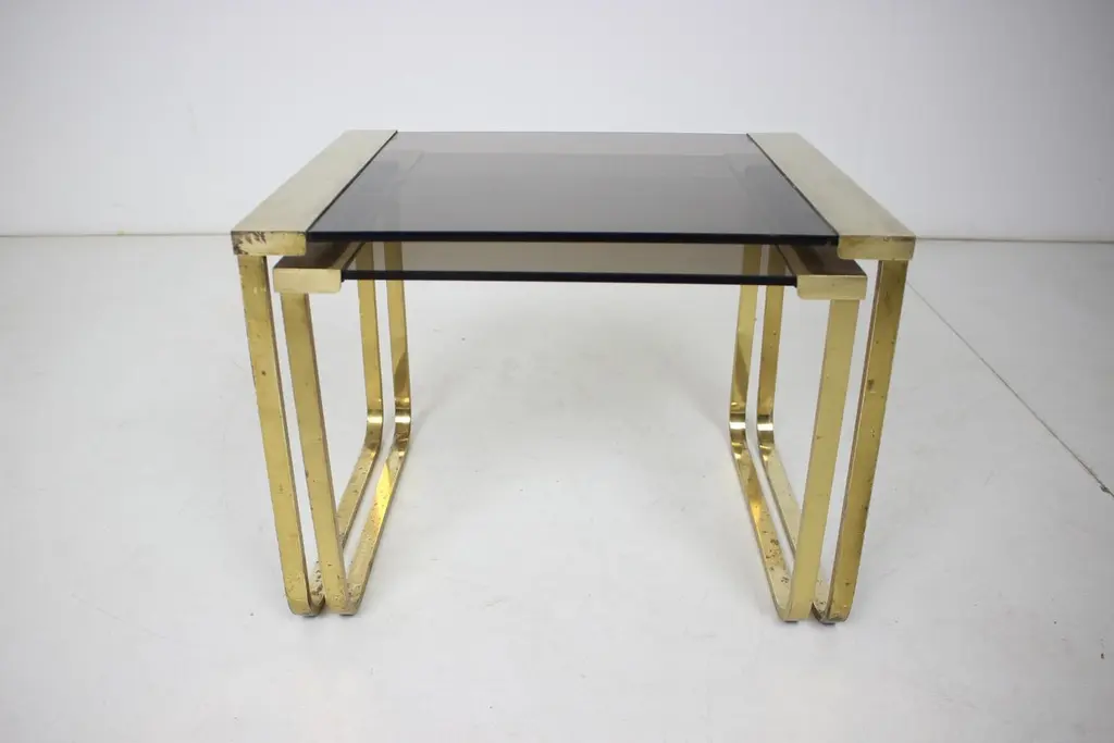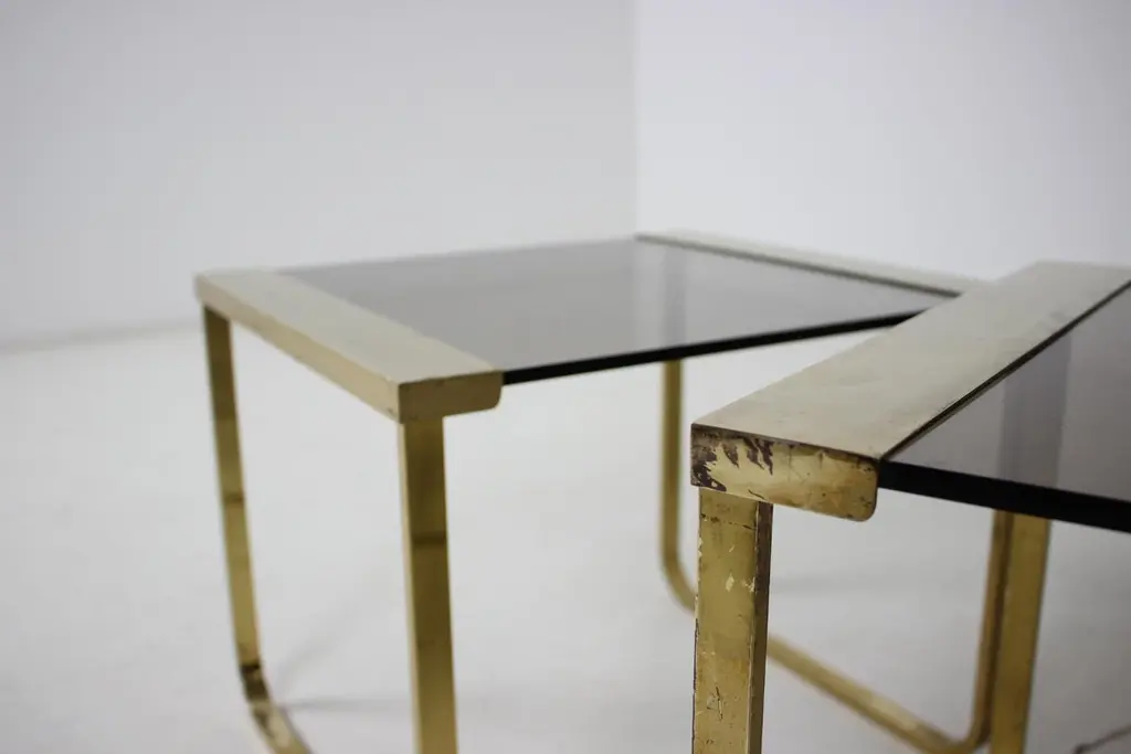 - Made in Germany- Made of brass, glass- Glass parts have scrabs- Dimension of smaller table: H 36 x W 45 x D 41 cm- Good, original condition.