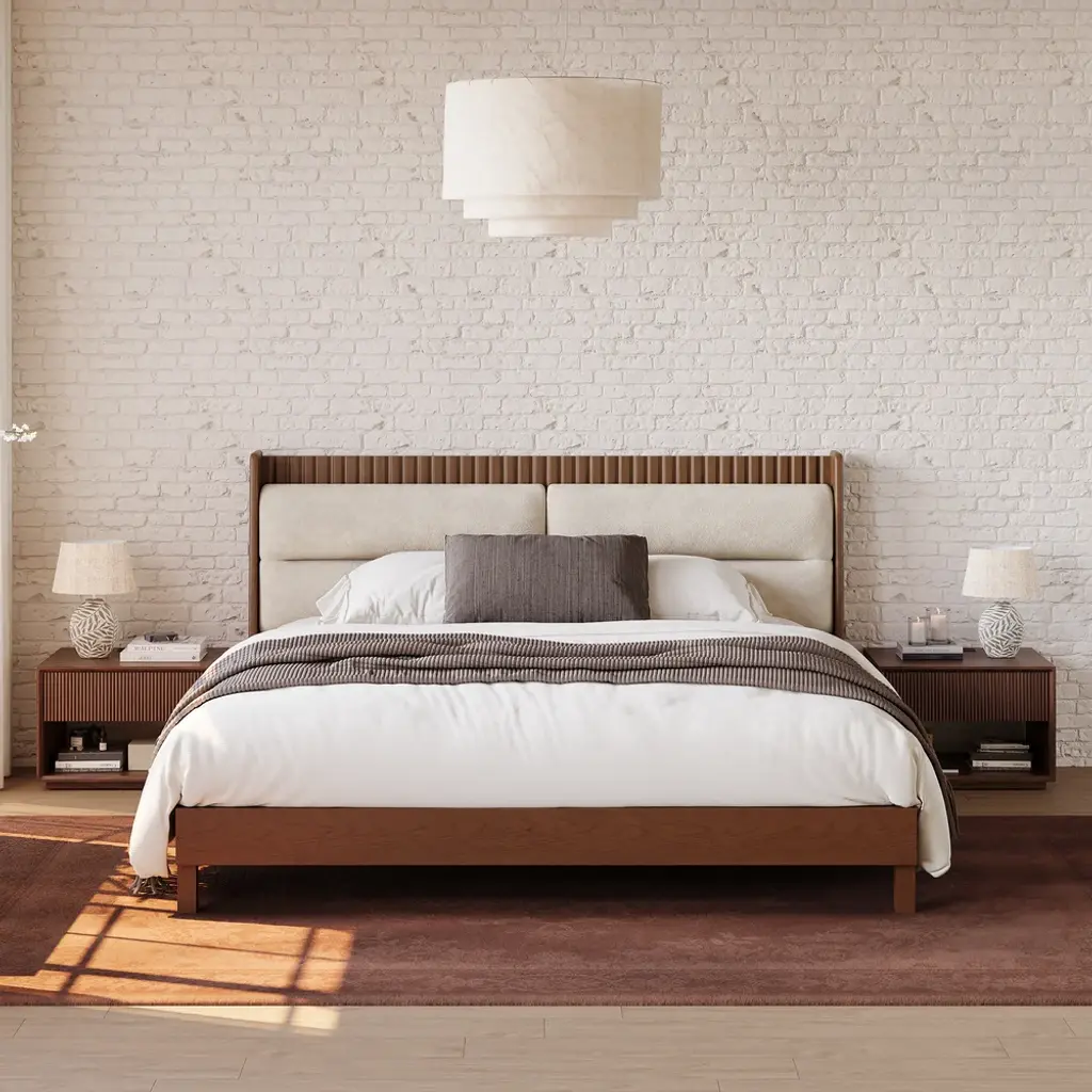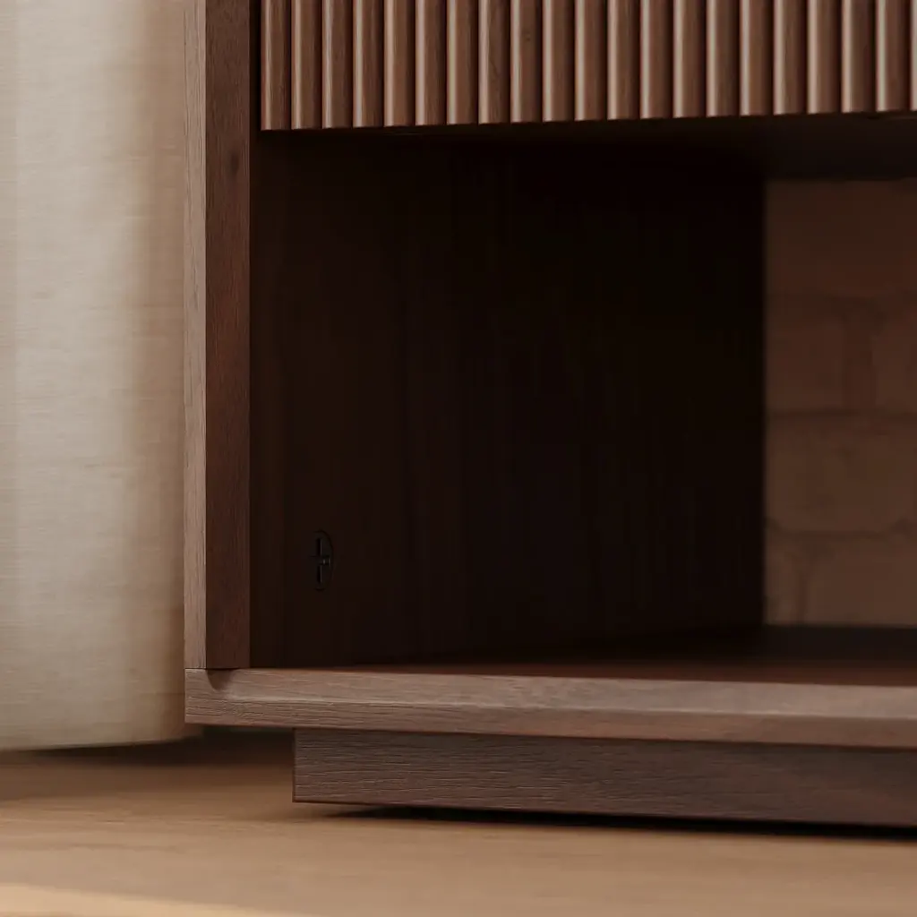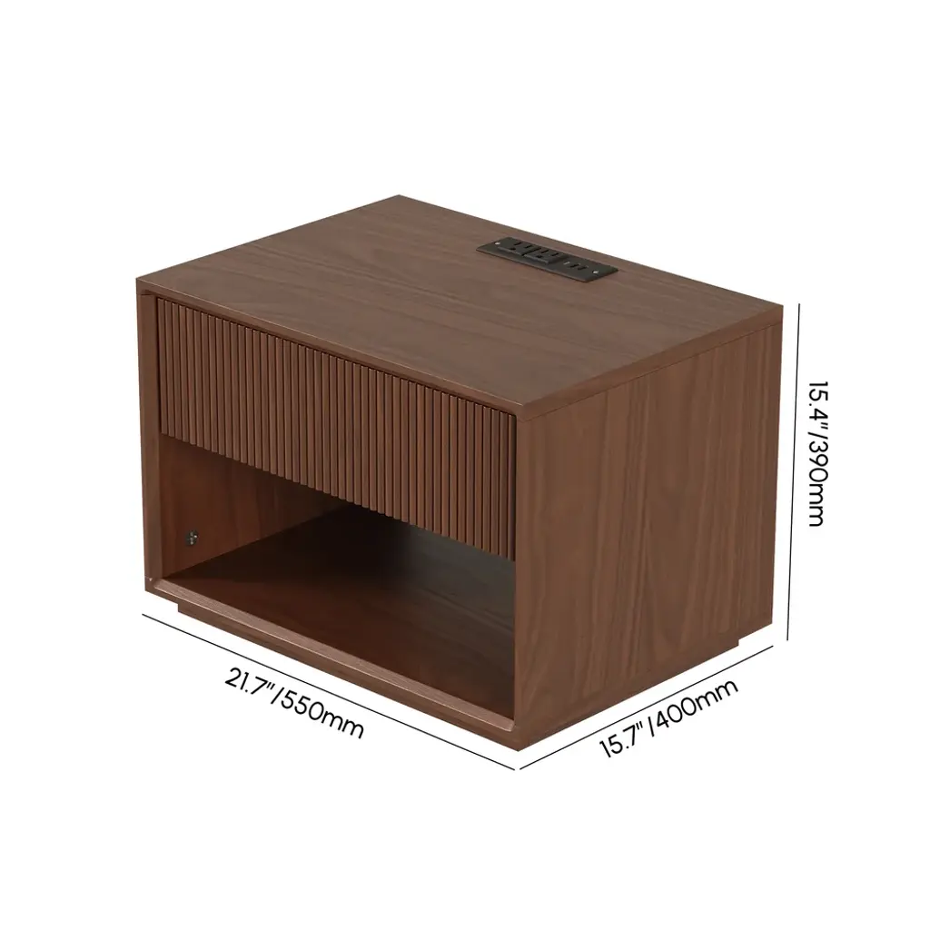 Bring modern warmth and smart functionality to your bedroom with this beautifully crafted fluted nightstand with a charging station. Designed for both style and convenience, it features a rich walnut finish with visible wood grain, perfectly balanced by the textured detail of the fluted drawer panel, adding depth and sophistication to the clean, minimalist form.