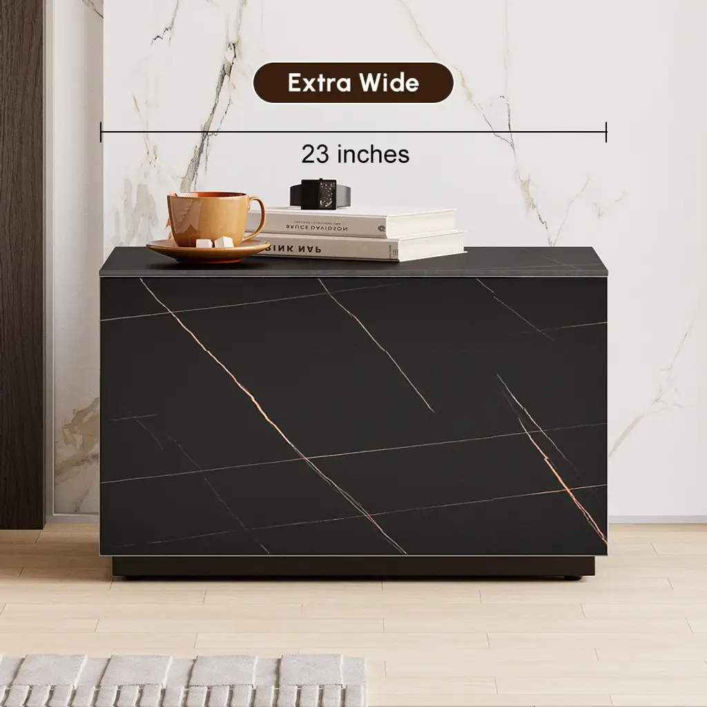 Our 2-drawer nightstand is crafted of premium sintered stone, which ensures remarkable durability and easy maintenance. The veining effect adds sophistication to any space, enhancing your bedroom's overall ambiance. The width of 23 inches provides ample surface area for your bedtime essentials, keeping your space organized.