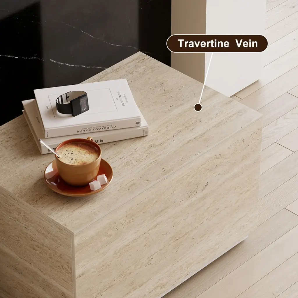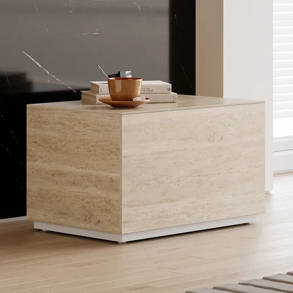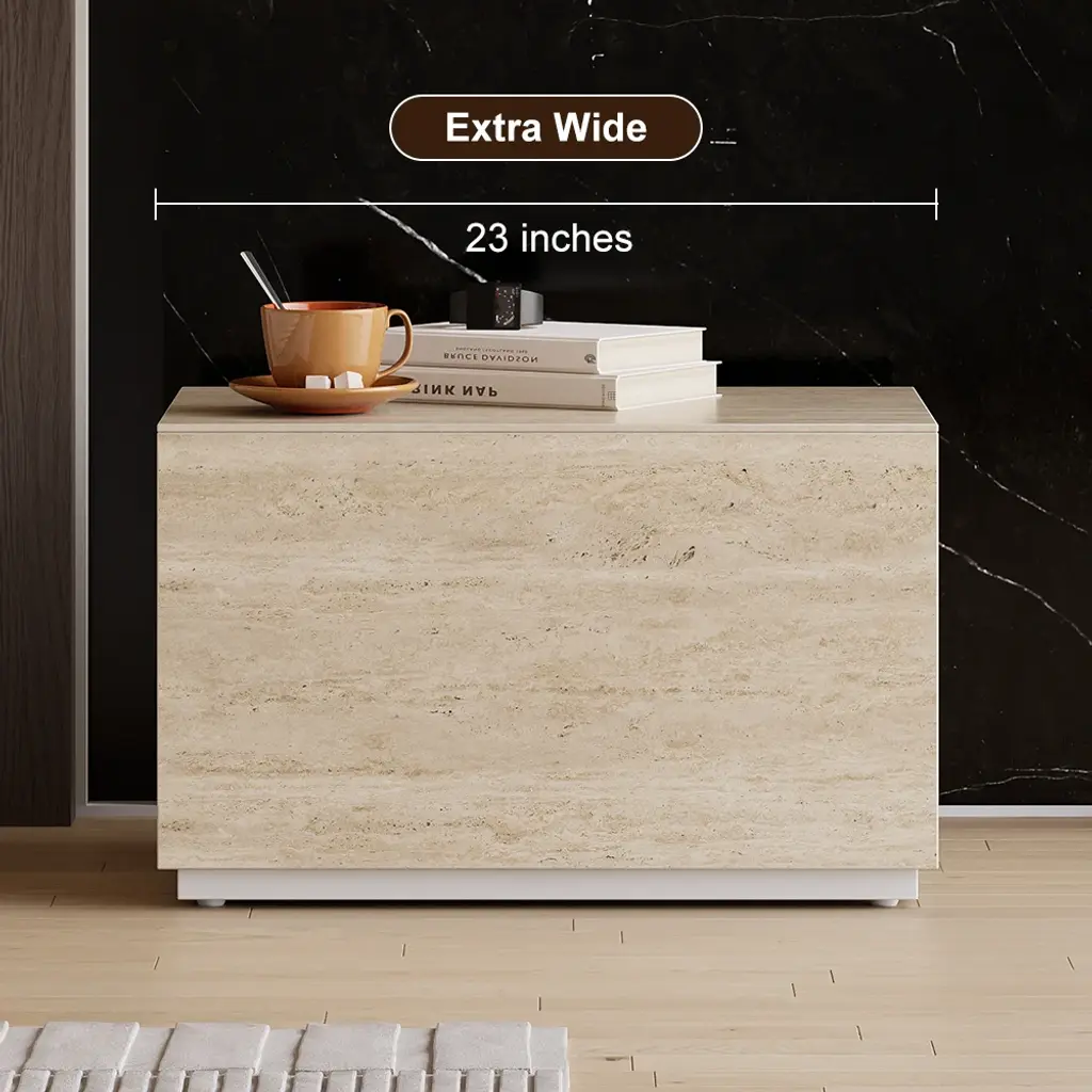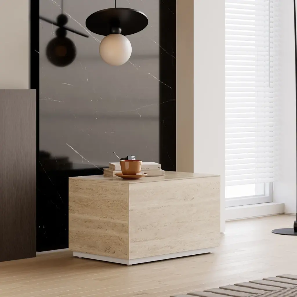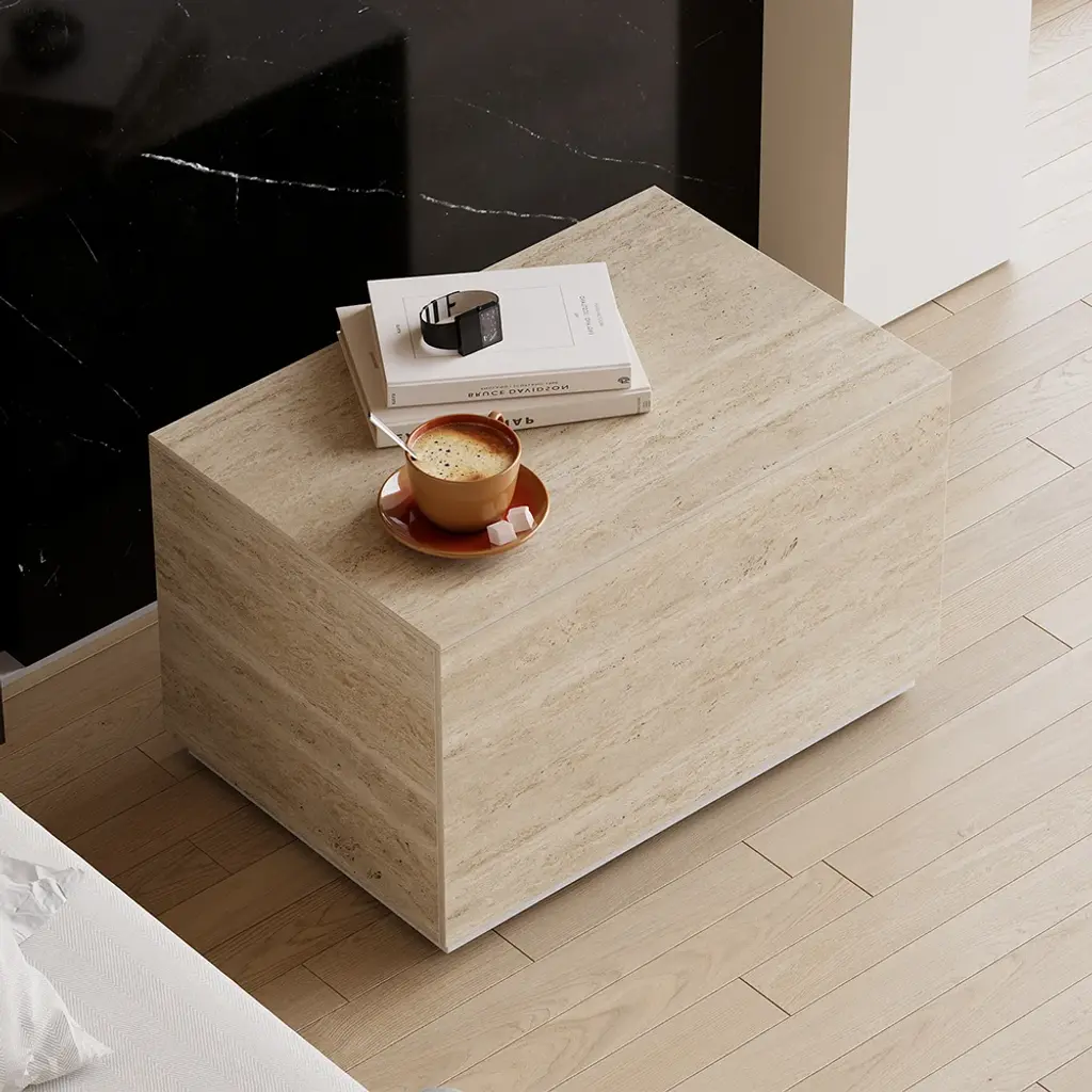 Elevate your bedroom with the Travertine Stone 1-Drawer Floor Nightstand. Crafted from premium travertine stone, it offers exceptional durability and a sophisticated natural pattern. The spacious surface keeps your bedside essentials organized, while one smooth-glide drawer store personal items neatly, combining style and practicality in one elegant piece.