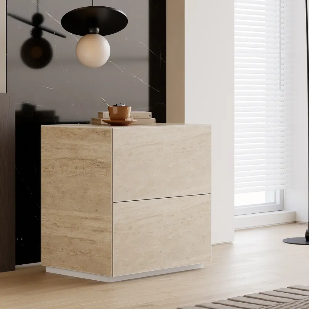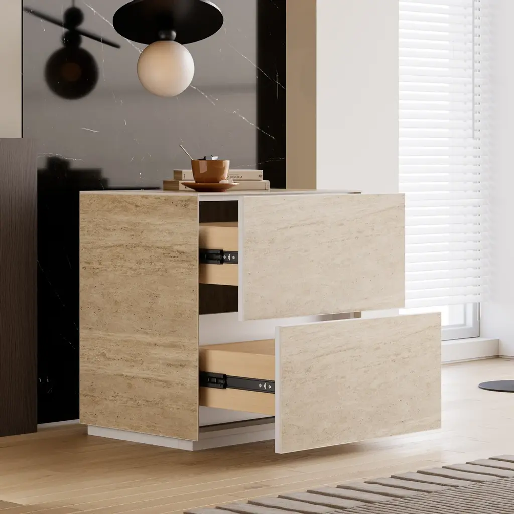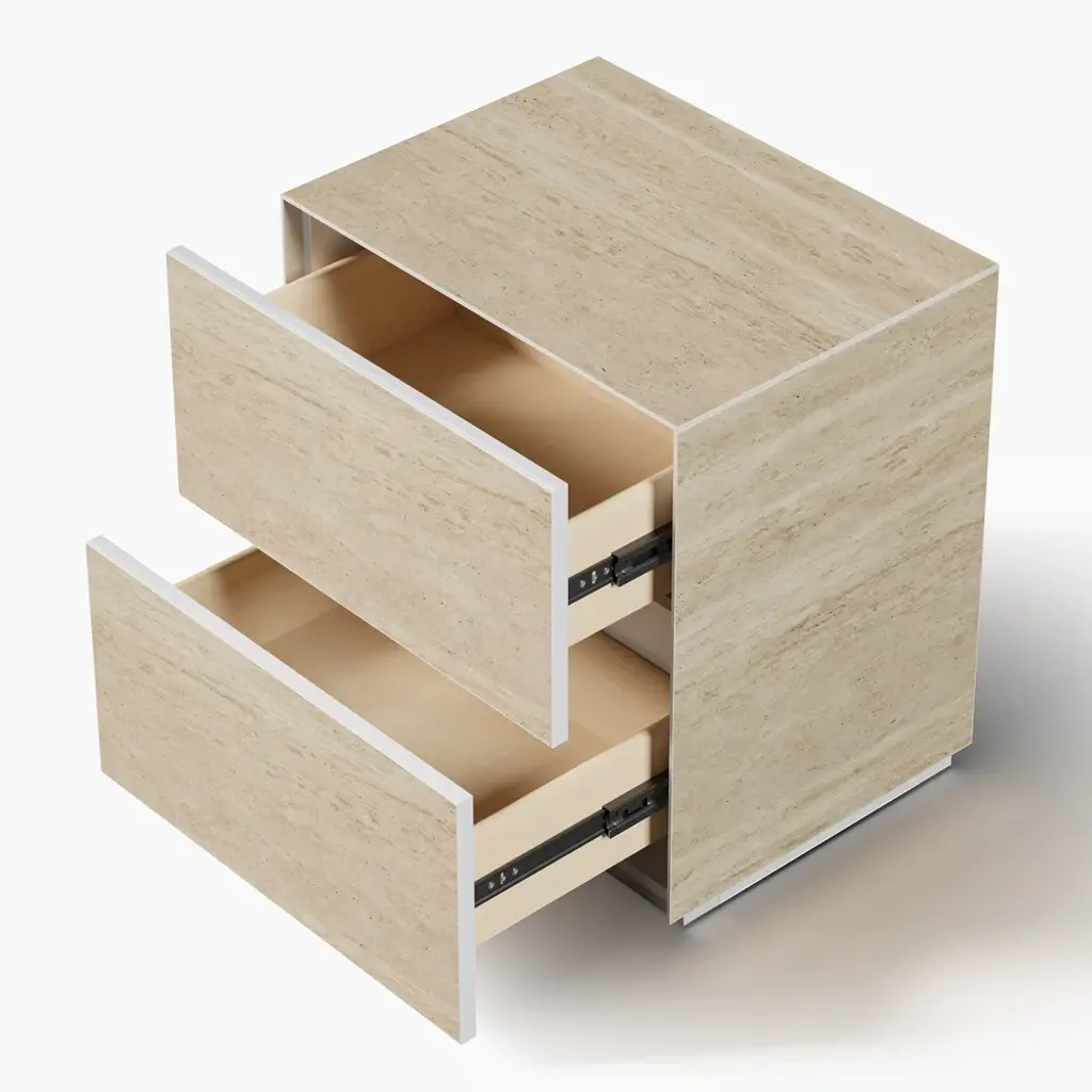 Our 2-drawer nightstand is crafted of premium travertine stone, which ensures remarkable durability and easy maintenance. The veining effect adds sophistication to any space, enhancing your bedroom's overall ambiance. The width of 24 inches provides ample surface area for your bedtime essentials, keeping your space organized.