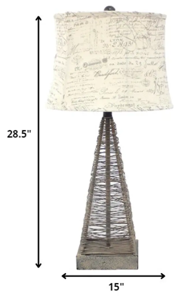 This 29-inch gray metal geometric bedside with white text drum shade is a great way to add some brightness to any corner of your home. A gorgeous gray metal base brings just the right amount of pizzazz to this fabulous lamp. The white drum linen shade is finishes this piece off nicely and symmetrically bedside table lamps help to add a soft and cozy glow to your bedroom. Great for evening reading. Use this lamp anywhere and elevate the look of the whole space. Bring some lite and good vibes into your space with this updated and stylishly designed lamp. 28.5-inch H x 15-inch W x 13-inch D