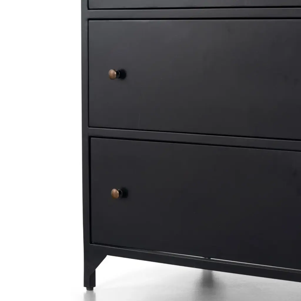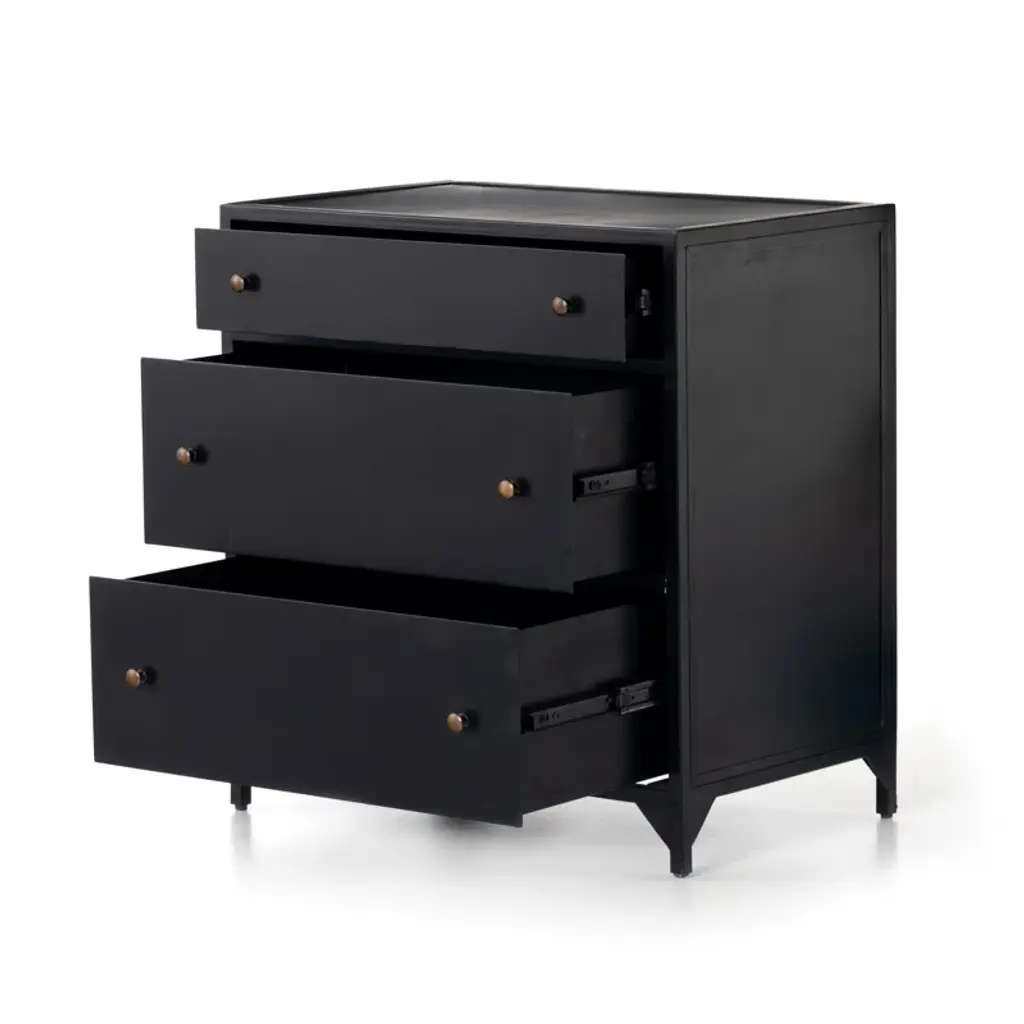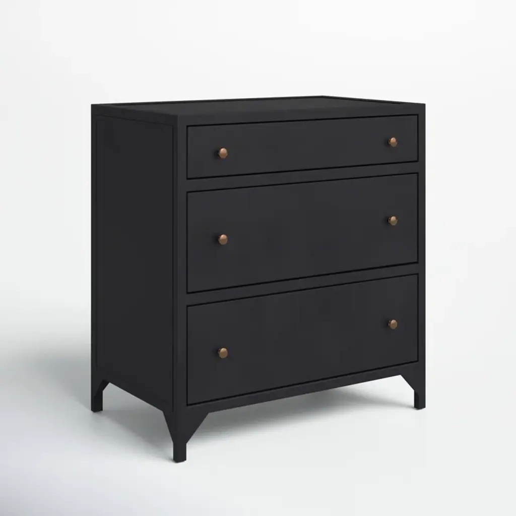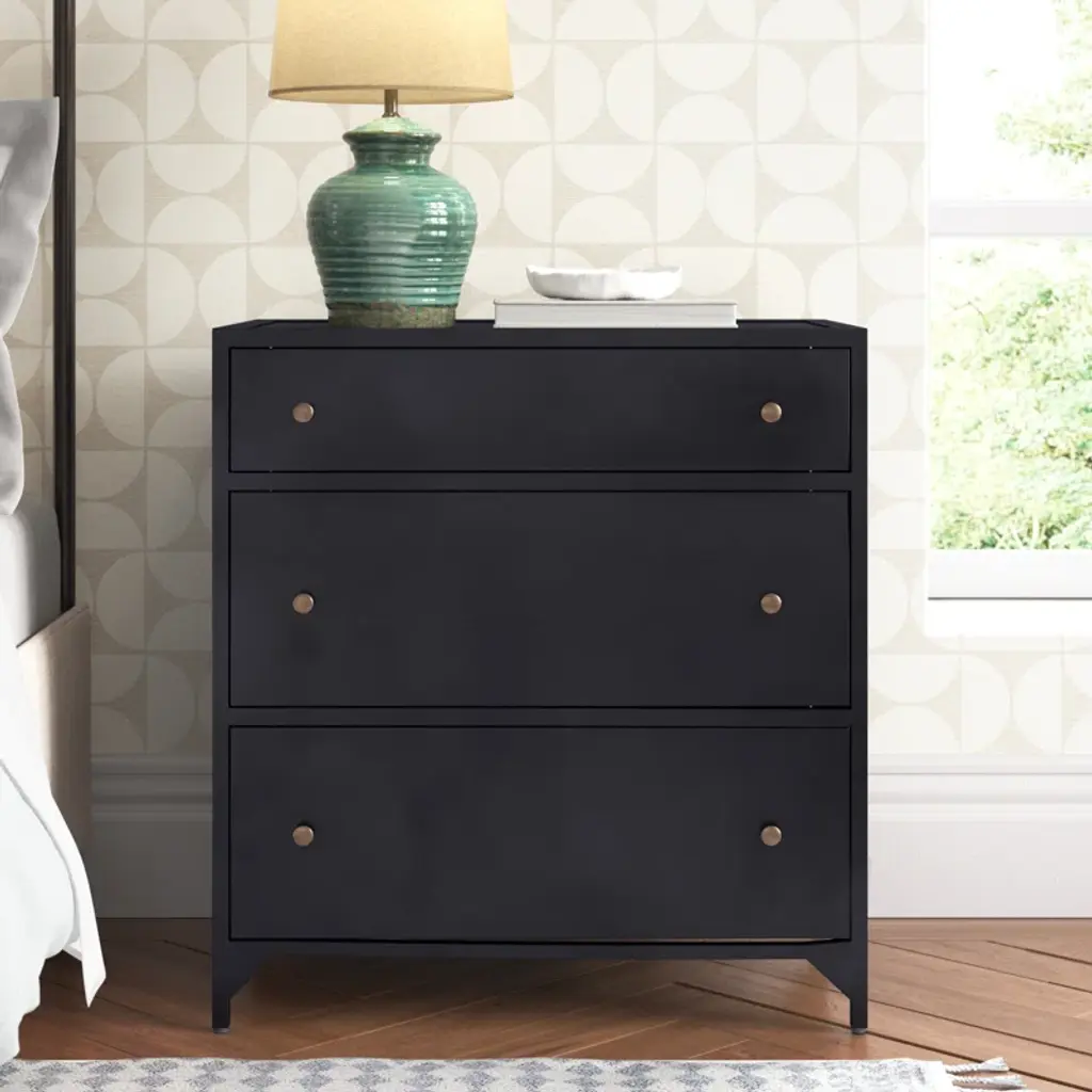 This 3-drawer nightstand adds an industrial-inspired vibe to your bedroom or guest room while keeping your bedside essentials organized and at arm's reach. It's made from iron in a sleek hue that goes with everything (just like your favorite black denim). We love how the gleaming pulls add just the right amount of contrast and give this nightstand a polished finishing touch. Plus, this piece is great solo or doubled up for stylish storage on both sides of the bed.