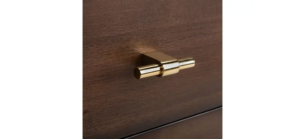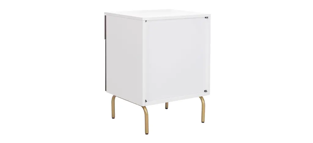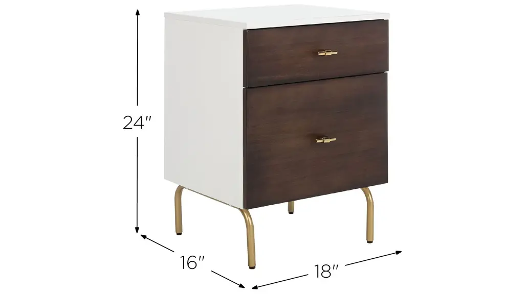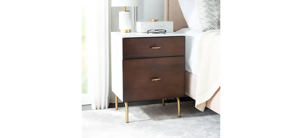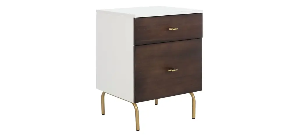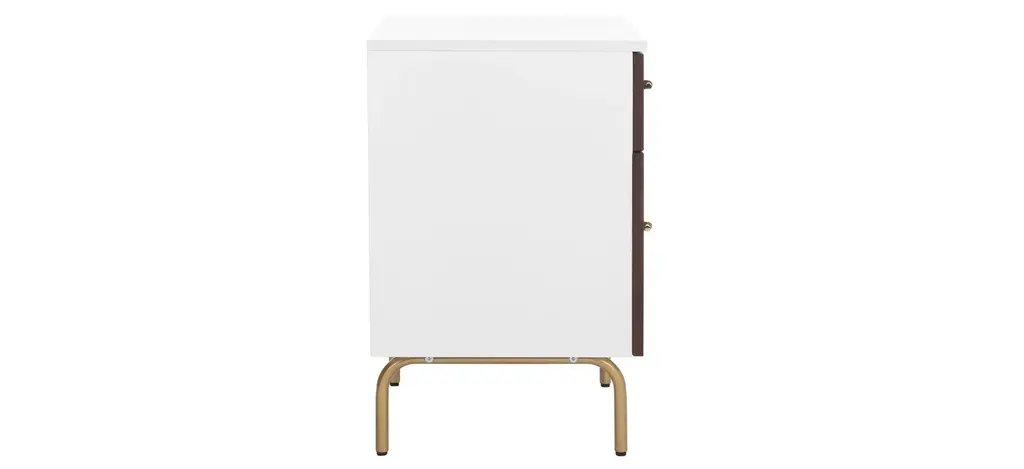 Elegant and modern, the natural beauty of the Abbie nightstand adds style and warmth to any bedroom. Finely crafted of mahogany wood, Abbie's rich white finish and gold metal legs give it vintage style charm. Two spacious drawers make for easy storage.