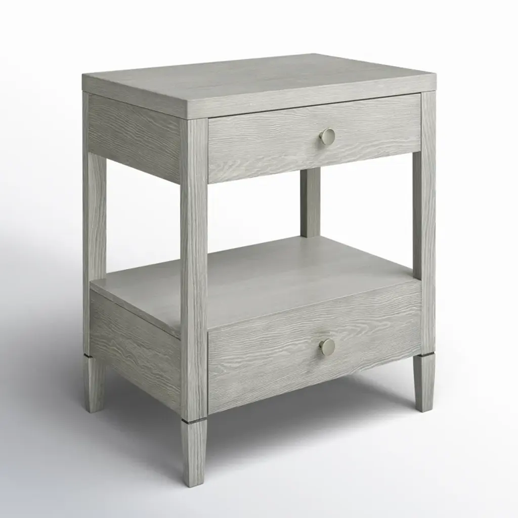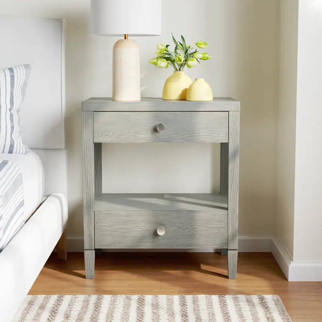 Showcasing two storage drawers and ample surface space for lighting, décor and other necessities, the Adalard Bedside Table offers a sweet serenity to spaces while still remaining wonderfully practical.