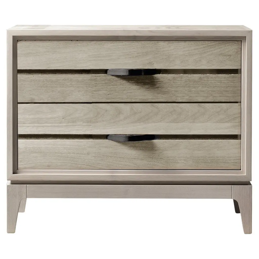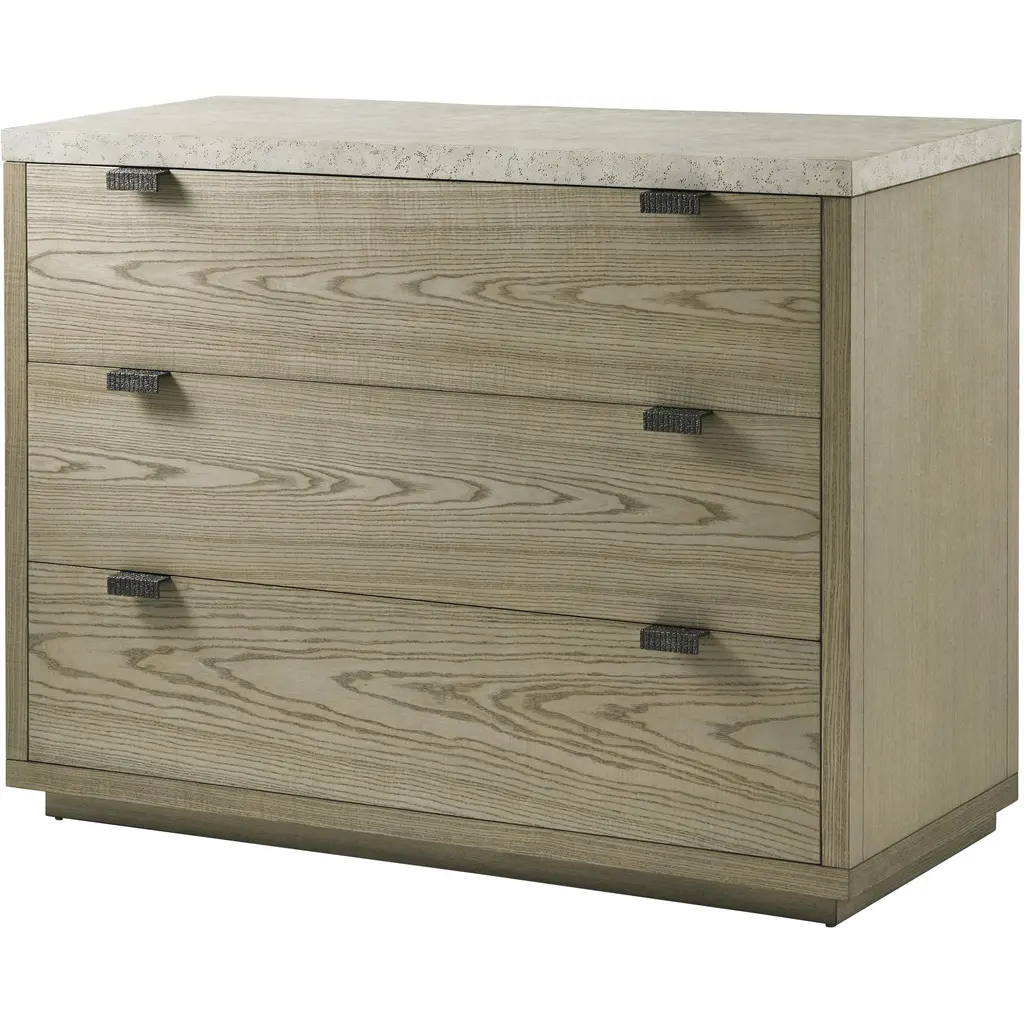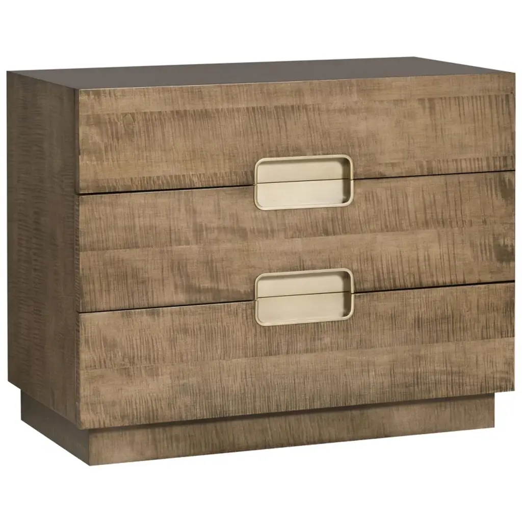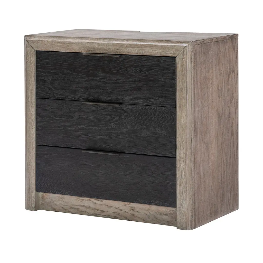 Organic and understated with a casual modern appeal, the Affinity Three-Drawer Nightstand features a sleek design with a glass top shelf and elegant bar pulls. It includes a convenient touch dimmer switch for your lamp.