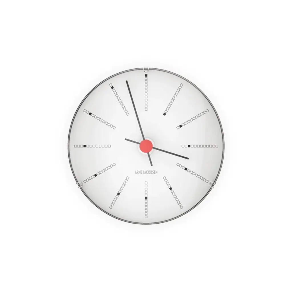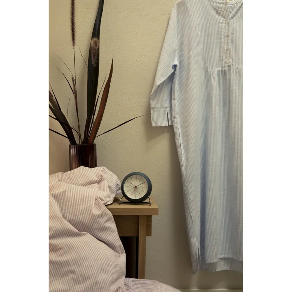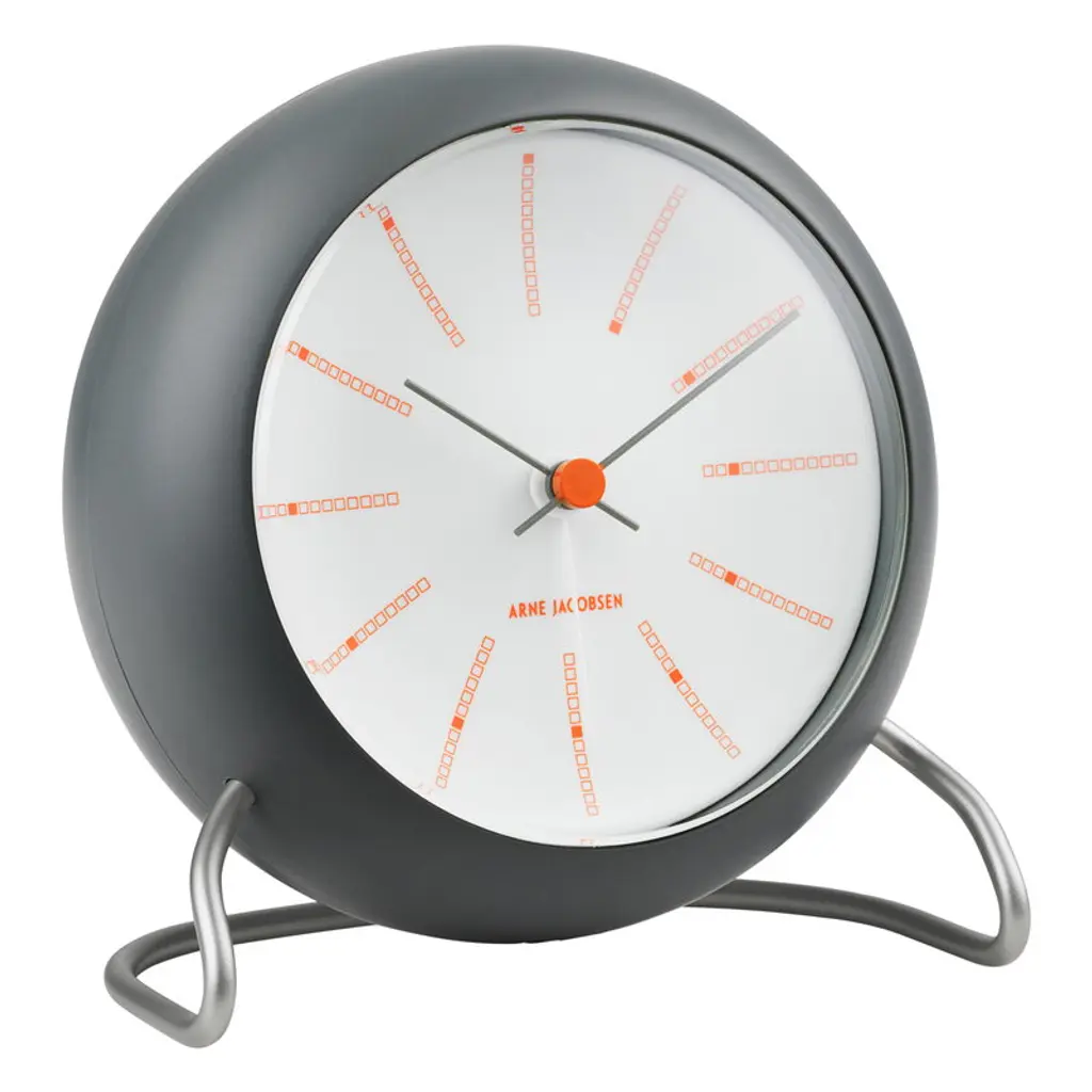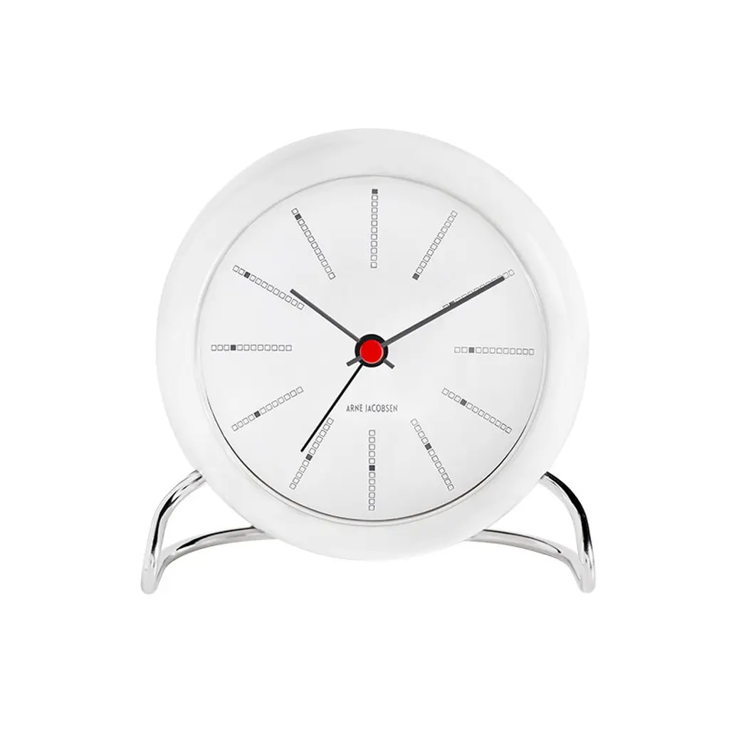 The AJ Bankers alarm clock is an updated version of the elegant table clock Arne Jacobsen designed in 1939. In addition to the graphic face, borrowed from the clock Jacobsen drew for the National Bank of Denmark in 1971, and the sleek metal base that refers to his iconic chair designs, the clock comes with new features such as a snooze function and a light sensor. The Bankers alarm clock makes a great gift idea and a stylish addition to any nightstand.