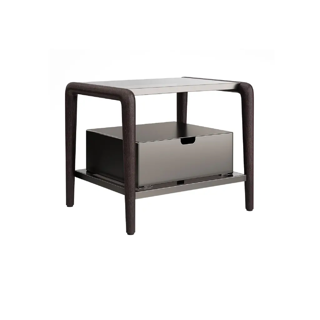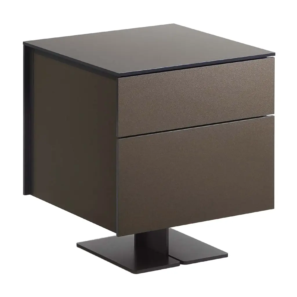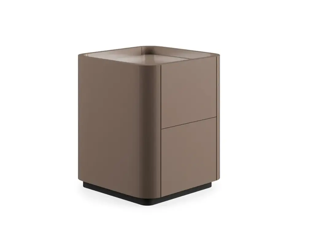 Size: 60 x 52 x 42hAki is a family of containers with drawers. The linearity of the design is characterized by an handle which enhances the horizontal lines of the volumes.FINISHINGSStructure: mat lacquered in our selected colours.Top: mat lacquered in our selected colours, covered with regenerated hard leather available in 4 colours (white, black, dark brown, ivory) or in glossy lacquered glass in our selected colours.