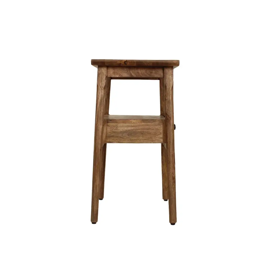 Add a touch of rustic elegance to your bedroom with this solid wood nightstand. Featuring a weathered finish and wood scoring, it brings a sense of warmth and character to your space. The nightstand offers both storage and display options, with a spacious drawer and an open shelf for your favorite reads. The metal handle adds a subtle contrast and can be easily removed for a customized look. Plus, the finished back means you can place it anywhere in the room with confidence. Enjoy the natural wood grain color variation that makes each piece truly one-of-a-kind.
